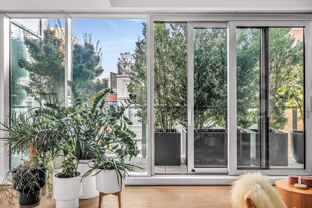 Welcome to Penthouse B at 200 Water Street, a special home located in Brooklyn's historic DUMBO neighborhood! A keyed elevator opens directly into the gracious entry foyer of this exceptional duplex penthouse. Floor-to-ceiling glass curtain walls with northern and southern exposures flood the home with natural light. The meticulous detailing throughout the interior and exterior of this home makes it truly remarkable. This stunning penthouse offers two bedrooms, two full baths, approx. 1,871 +/- sq. ft. of interior space, and approx. 1,695 +/- sq. ft. of private exterior space across multiple levels. The well-designed living room features custom-built white oak shelving, recessed cove lighting, and marble-topped storage cabinetry. The living room seamlessly opens to the first private garden terrace, offering impressive views and serving as a perfect continuation of the space. The full scale of this open space is prefect for entertaining or everyday living. Enjoy your favorite movies and music with an integrated sound system installed throughout the apartment. Additionally, there is a full-length, floor-to-ceiling retractable drapery for added ambiance and privacy. The open chef's kitchen boasts a large marble topped center island with counter seating, abundant storage options, custom cabinetry from Pedini and top-of-the-line appliances. These include a Sub-Zero refrigerator and wine fridge, a Wolf six-burner cooktop and oven, vented hood, Bosch dishwasher, and an integrated Sharp microwave. Countertops and backsplash made of Montclair Danby marble are complimented by a polished chrome Hansgrohe faucet. As you enter the generously sized primary suite, you’ll immediately appreciate the thoughtfully designed layout. This suite features a large custom fitted walk-in closet, Poulsen sconces on both sides of the bed, and a luxurious en suite bath. The en suite bath is highlighted by a glass shower enclosure with polished chrome Hansgrohe fixtures, hexagonal Blanco Carrara mosaic wall and floor tiles, a custom medicine cabinet with LED lighting, and a Duravit toilet. Also, on this level is the second bedroom, highlighted by custom closets, along with a conveniently located full bath, designed with the same high-end finishes as the primary bath. The architectural staircase leading up to the second level features a custom single-piece wood banister with recessed lighting and a Poulsen wall light. While upstairs, you will be struck by the incredible private rooftop terrace that wraps around two sides of the home, featuring a mature evergreen and hydrangea garden, a freestanding American Made grill, multiple unique seating areas, and breathtaking views that span across the Manhattan skyline. The gardens on both levels feature timed irrigation and lighting throughout. The sheer size and layout of the rooftop terrace can certainly cater to anyone’s needs whether it’s hosting a large gathering, an intimate dinner with a view, lounging on a sunny day, or enjoying beautiful sunsets. Rounding out this impeccable home is Lutron lighting, recessed lighting, central A/C, and a laundry area with convenient custom built-in storage along with a Samsung washer/dryer. Once a Brillo factory, 200 Water Street is the true definition of a daylight concrete factory and what DUMBO living is meant to be. 200 Water Street amenities include a full-time doorman, a beautifully landscaped sunken garden, access to a parking garage, a well-appointed gym, and bicycle storage. The curated lobby features 14-foot ceilings and teak wood accents. Enjoy close proximity to the stunning Brooklyn Bridge Park waterfront, cobble stone streets, the historic Empire Stores, exceptional dining and nightlife, a vibrant arts scene, and the unique appeal of one of New York City’s most exciting and beautiful neighborhoods. Just blocks away from the F/A/C trains and Water Ferry. Just one stop into Manhattan.