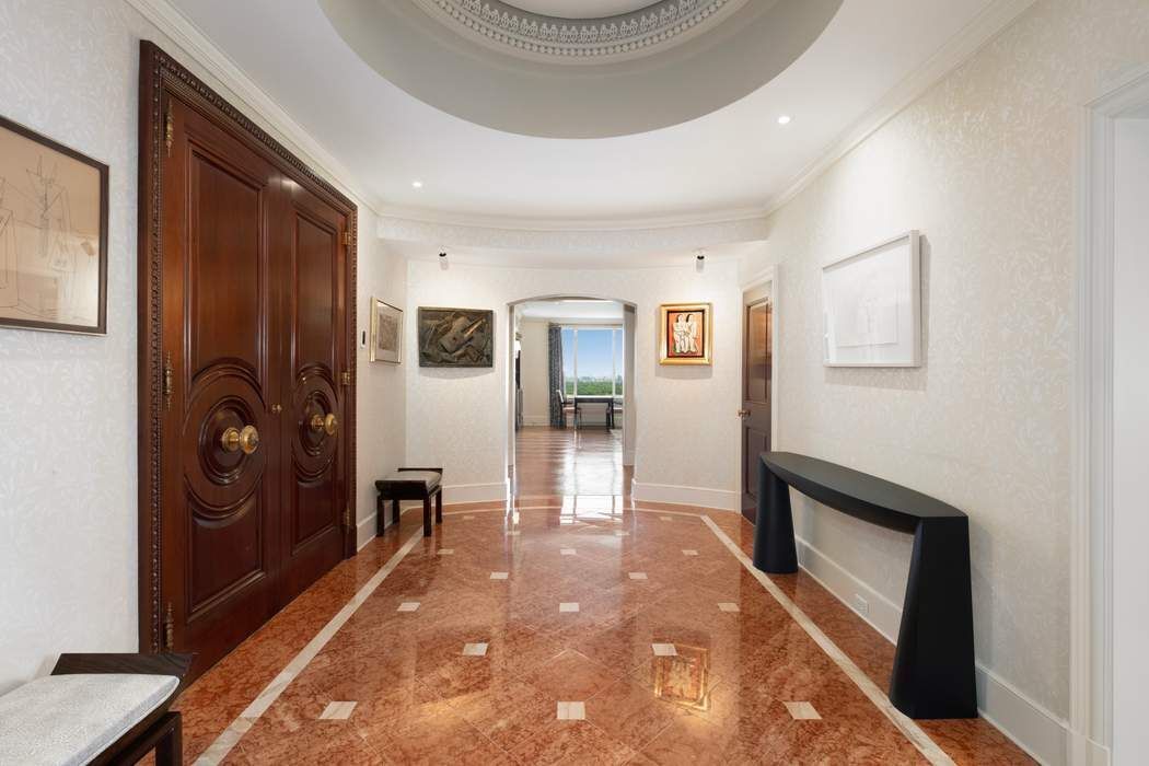This spectacular seven room aerie perched atop the prestigious Hampshire House on Central Park South is defined by its expansive and glorious views of Central Park and the Manhattan skyline. This sun-flooded 24th-floor residence is ideally situated at the top edge of midtown and, in addition to its proximity to the Park, is moments from MoMA, Lincoln Center, Carnegie Hall, and the theatre district, as well as many of the city’s best boutiques and restaurants. Featuring a classic renovation and a spacious and elegant floor plan, the apartment is perfection, ideal for entertaining and a sophisticated lifestyle. From a private elevator landing, the central marble Gallery opens to the north-facing Living Room with gorgeous views of Central Park. Sharing those stunning vistas is a nearby Library with access to a wet bar. The Gallery also accesses the formal Dining Room, as well as a well-equipped chef’s eat-in Kitchen with open eastern views and marvelous sunlight. A nearby Powder Room, a large Pantry/Laundry Room, and ample closets throughout. The bedroom wing is comprised of two very gracious Bedroom Suites, each with very ample closets and an ensuite marble bathroom. Each of these opens to a delightfully spacious Sitting Room. The grand scale and very inviting nature of this suite of rooms defines privacy and tranquility. Throughout the residence, lovely hardwood floors, lighting and music systems further distinguish this stunning home. Hampshire House was designed in 1931 by prominent architects A. Rollin Caughey and William F. Evans, Jr. An architectural icon, the building is notable for its spectacular, steeply-pitched copper roof with two tall chimneys. 150 Central Park south offers an ideal blend of old-world charm and modern convenience. Conceived at the height of the Art Deco movement, its lobby features a revolving door and a pristinely restored interior originally designed by Dorothy Draper. Privacy and a very top echelon of service is ensured by a staff plan that includes a resident manager, full-time doormen and concierge services. Hampshire House residents enjoy access to its private health club as well as an extensive list of amenities. Monthly maintenance fees include basic cable, window washing, and utilities (gas and electric).