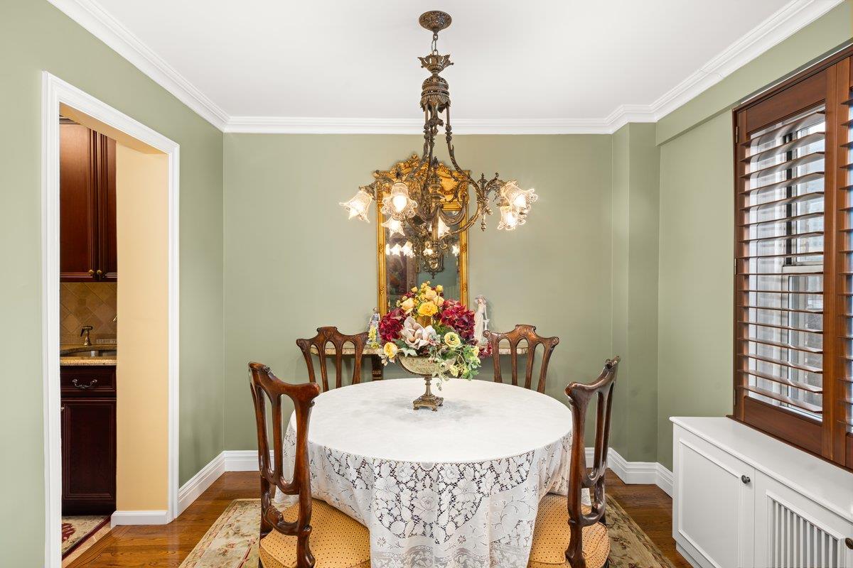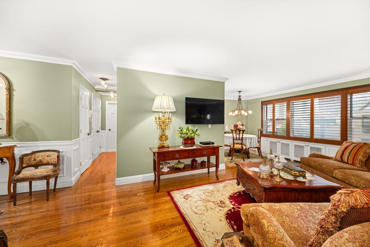 Welcome to Apartment 7IJ, the very definition of turn-key living. Spanning approximately 1,400 square feet with a split-bedroom layout, this thoughtfully combined residence is one of the only true two-bedroom homes on the south side of the building. Since the building was not originally constructed with two-bedroom apartments on the building’s southern side, such layouts only exist through rare combinations like this one. Set at the back of the property, the apartment is filled with natural light and enjoys a rare sense of peace and quiet. A wide entry foyer sets the tone and leads into a beautifully renovated space. The kitchen is outfitted with custom wood cabinetry, granite countertops, and full-size appliances including a Sub-Zero refrigerator, while the adjacent dining area and living room flow seamlessly to create an inviting space for both entertaining and everyday living. Pristine hardwood floors, custom crown and wall moldings, ‘country-style’ window shutters, built-in storage beneath the windows, and through-the-wall air conditioning in every room further elevate the home. The first wing of the apartment offers generous closet storage, a sizable bedroom, and a newly renovated marble bathroom with recessed lighting and all-new plumbing. On the opposite side, the primary suite is truly exceptional, spanning approximately 500 square feet with three walk-in closets, a spa-like bathroom twice the size of any other in the building, and a bedroom large enough to comfortably accommodate children while still leaving ample space for play and study.Apartment 7IJ represents a rare combination of thoughtful upgrades and expansive proportions, an ideal opportunity for buyers seeking both functionality and style.