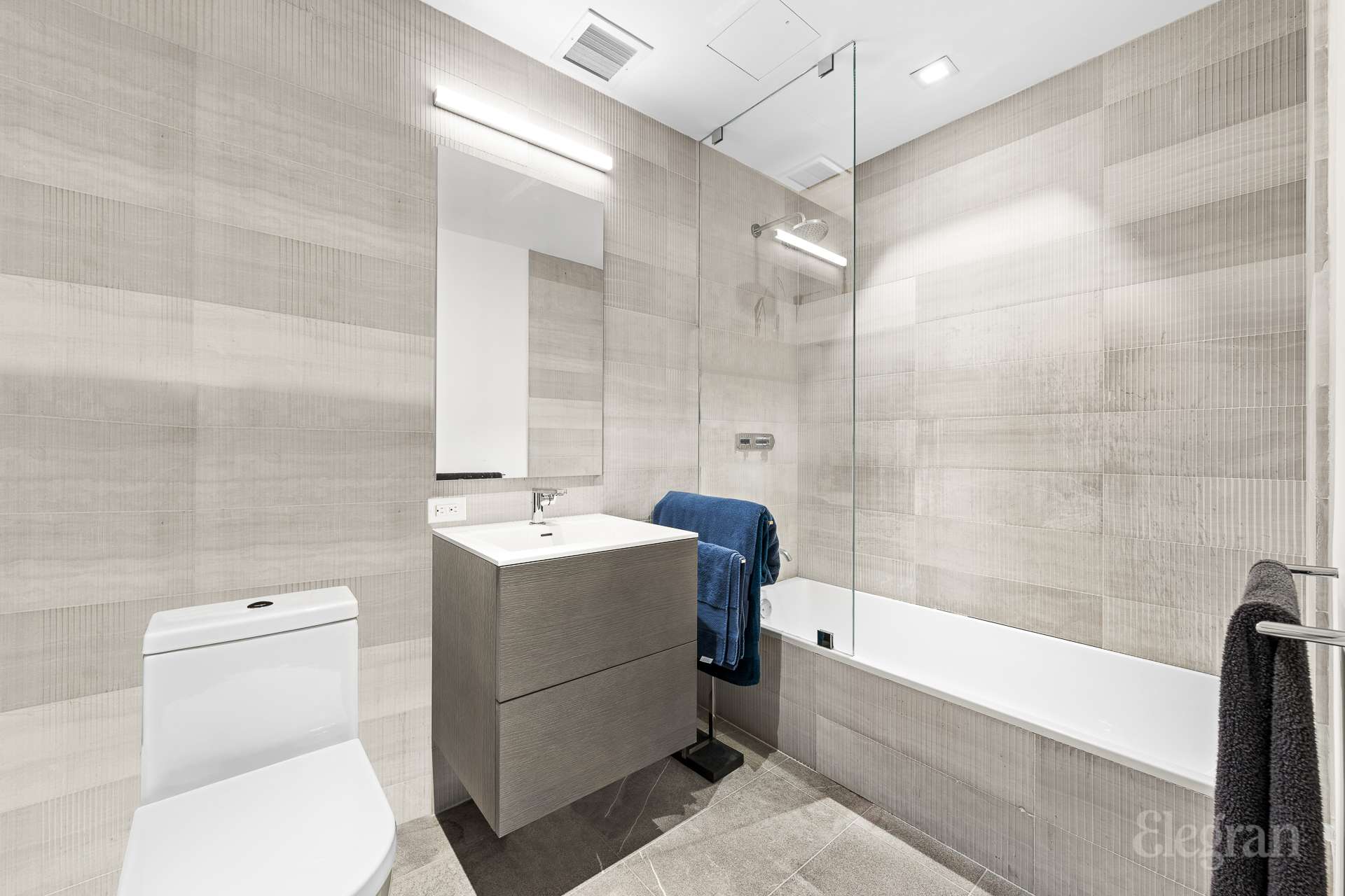 • Experience modern Italian luxury at 75 First Ave, Residence 5C—a perfect blend of style, comfort, and convenience. Welcome to Residence 5C, a stunning 1-bedroom, 1-bathroom home in one of the East Village’s most luxurious boutique condominiums. Designed by renowned Italian architect Stefano Pasqualetti, this residence blends modern sophistication with timeless elegance. Bathed in northern light from floor-to-ceiling windows, the home features wide-plank cashmere oak floors and an open-concept living and dining area that flows seamlessly into a designer kitchen. The kitchen is beautifully appointed with white and beige matte lacquered cabinetry, Carrara marble countertops, a Fantini faucet, and high-end Miele appliances. The spacious bedroom offers a custom reach-in closet, while the spa-like bathroom boasts a custom vanity, Nublado Raw textured marble walls, and Piasentina flame-finished stone floors. A Miele washer/dryer and ample storage complete the home. 75 First Ave is a striking cantilevered glass condominium offering a full-time doorman, a landscaped rooftop deck with breathtaking city views, a private residents’ lounge with a yellow travertine fireplace, a state-of-the-art fitness center, and a bicycle room with additional storage units. Located near Tompkins Square Park, the Bowery, NoHo, and the Lower East Side, this prime East Village residence is surrounded by trendy restaurants, cafes, and shops, with easy access to the F, 4, and 6 subway lines. Pets are welcome.