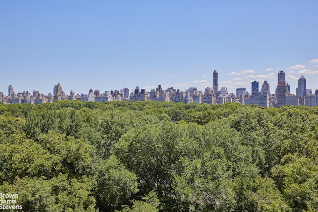 One of the largest layouts at The Century, almost 3,000 Square Feet with 65 Linear Feet directly facing the Park, it was formerly nine rooms now configured into six. The seamless combination of a Classic Six and a Park View One Bedroom Duplex provides magnificent space, views & light. From the semi-private hallway on the ninth floor, one enters an impressive double width step-down Living Room that also encompasses the lower level of the duplex. Two large bay windows deliver outstanding views of the park as well as the 5th Avenue and Central Park South skylines. A third window is directly above the well-concealed wet bar. The spacious, serene Primary Bedroom Suite also overlooks the park.