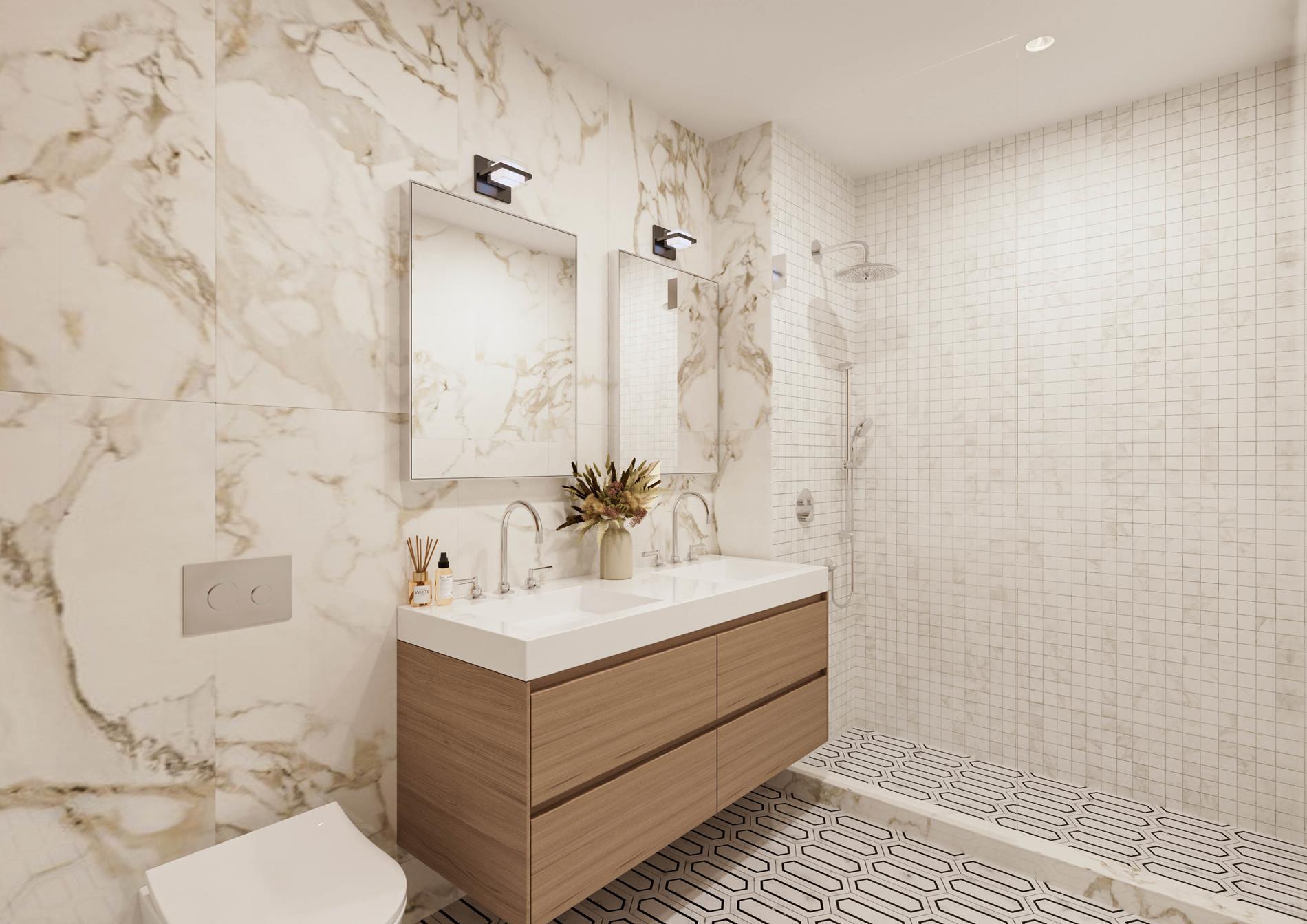 Kitchens are truly a culinary masterpiece that embody world-class craftsmanship that inspires awe with an outstanding professionally-styled appliance package. Their impeccable design elements incorporate Scavolini custom cabinetry surrounded by gleaming Italian Carrera marble slab countertops with a Grohe faucet. A luxe full suite of innovative Viking appliances — refrigerator, induction cooktop with range hood insert, single wall oven, and dishwasher — is perfectly integrated into these sophisticated kitchens, which feature a Leibherr 18’’ wine refrigerator. The result is a new standard of elegance and functionality.