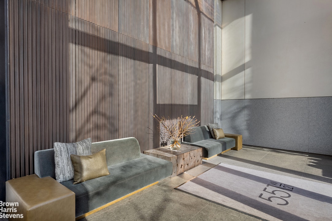 Set within a striking contemporary building designed by Norman Foster + Partners, residents enjoy a private gated entrance, a soaring lobby, and a full suite of world class amenities, including a 24-hour doorman, concierge service, fitness center with spas, yoga room, golf simulator, children's playroom, and more.
