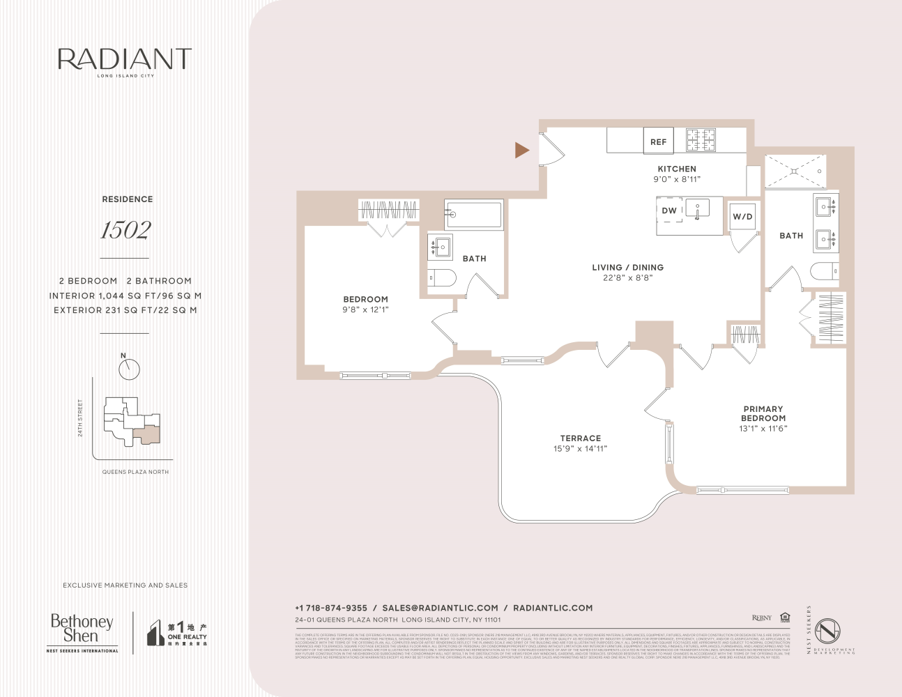 Situated in an emerging residential enclave in Long Island City, Radiant is moments from numerous restaurants, bars, cafes, and shops. MoMA PS1, Brooklyn Boulders, Queensbridge Park, Target, and Murray Playground are all a few blocks away. Accessible subway lines include the 7/E/R/N/W/M/F. Pets are allowed.