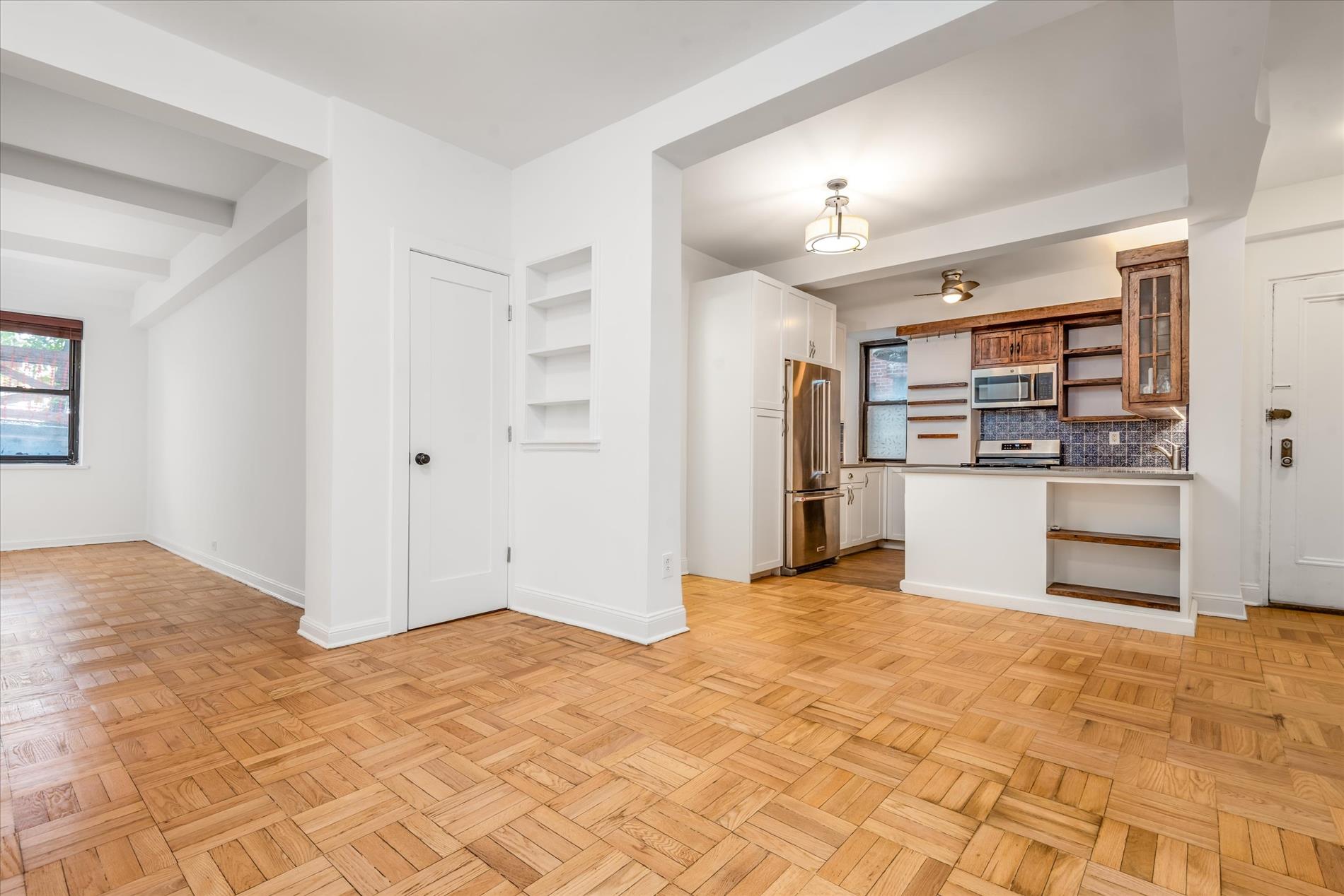 Apartment 1CD at 90 Park Terrace East sits on a quiet, tree-lined street in Inwood’s Park Terrace area. A combination of two units has produced a generous layout with three bedrooms, two full baths, and a flexible bonus room. Classic pre-war elements—parquet floors, high ceilings, recessed bookshelves—are paired with thoughtful updates, abundant storage, and a move-in ready presentation.