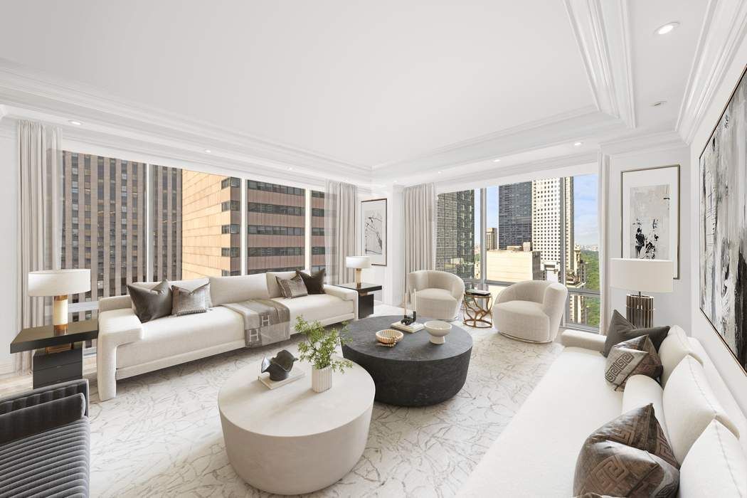 • This stunning 1,790 square-foot apartment is situated in one of the most desirable condominiums along Fifth Avenue, right in the heart of Manhattan, offering breathtaking views of Central Park from every room. Positioned at the northwest corner of Fifth Avenue, this expansive, renovated 2-bedroom, 2.5-bathroom residence boasts 17 floor-to-ceiling windows, providing panoramic views of Central Park and the iconic New York City skyline. The apartment also features a windowed eat-in kitchen and can easily be transformed into a three-bedroom layout. Currently leased for a year, this unit is available as an investment with a tenant in place. Tenant relocation may also be negotiable. The apartment includes an updated, windowed eat-in kitchen with modern appliances, along with a Miele washer and dryer. Enjoy a west-facing view of the renowned Rockefeller Center and its rooftop gardens. The unit also features red oak wood flooring in the living areas, new carpeting in the private quarters, and updated bathrooms. The luxurious owner's suite includes an en-suite bathroom and two generously sized walk-in closets. The second bedroom, equally impressive, features its own en-suite bath and ample closet space. Enhancing the apartment's appeal, Unit 35A offers temperature-controlled central HVAC and an in-unit washer/dryer. Located in the heart of Midtown Manhattan’s most prestigious district, Olympic Tower was developed by a consortium led by Aristotle Onassis. The building offers unparalleled white-glove services, including a 24-hour multilingual staff, a sophisticated concierge and doorman, as well as parking valet services for both residents and guests. Residents enjoy the highest level of discretion, security, and comfort in this exclusive condominium. Staging by Iliara Barion. Fees: Application Processing Fee (Non-Refundable) Seller: $600.00?Background Report Fee (Non-Refundable,(Required) Buyer: $0?Document Deposit ( Refundable) Seller:$1000 Lead Based Paint Disclosure Fee (Non-Refundable)Seller:$75.00? Move In Fee (Non-Refundable):$750.00 Seller? Move Out Fee (Non-Refundable): Buyer: $750.00 Post Closing Documents: $500 Flip tax::1% buyer $120 Domecile Processing fee? $65 Digital Submission fee
