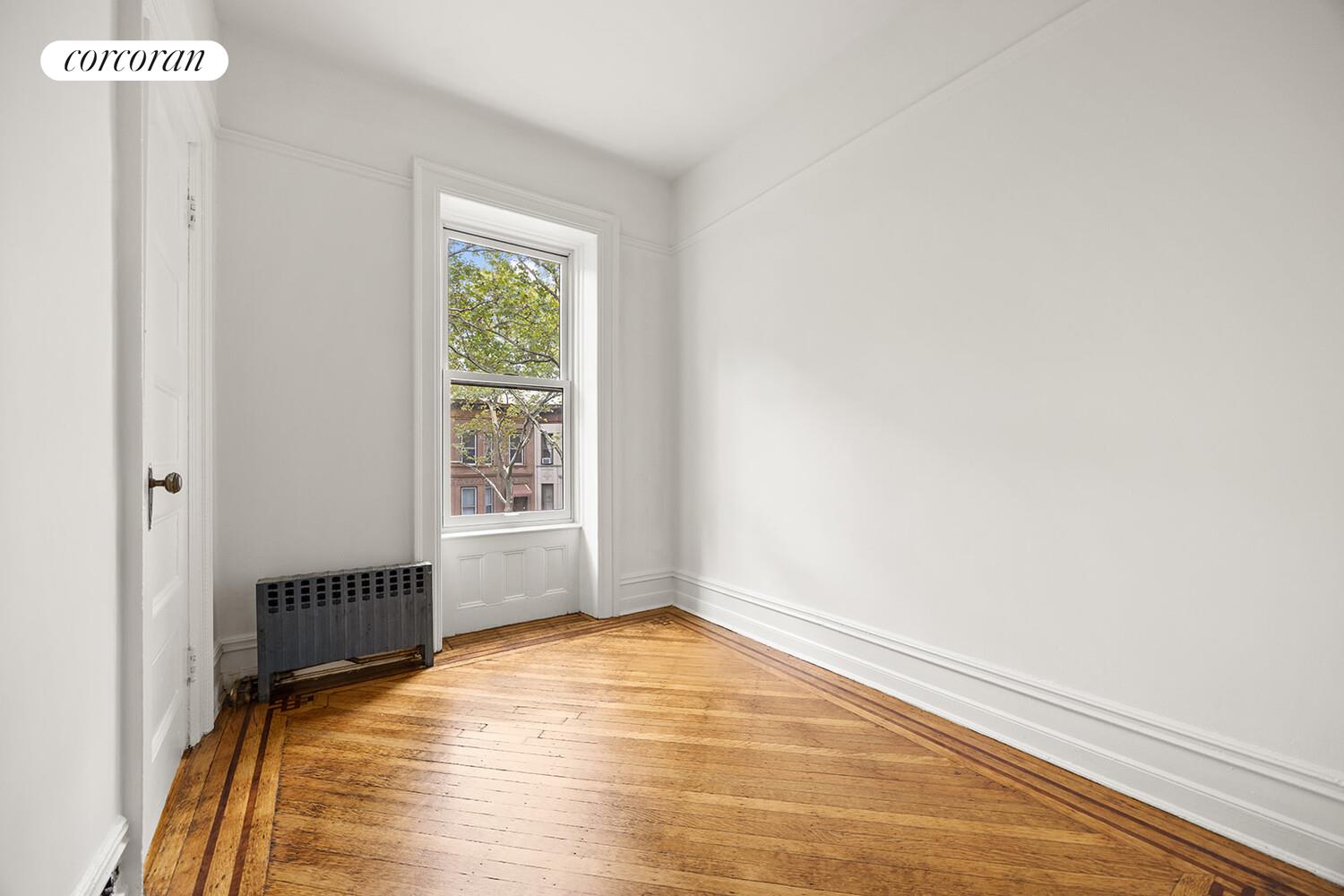 The parlor floor above currently hosts a generously sized living room with adjacent home office (this room can easily convert to large primary suite). Two bedrooms and another full bath, all enriched by original hardwood floors and period detailing that echo the home's early 20th-century roots are located here.