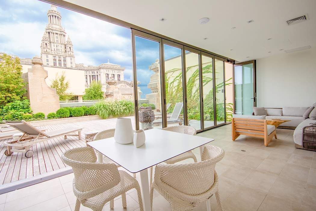 • A Residence of Unparalleled Grandeur – South-Facing Corner Home at 49 Chambers Step into an extraordinary South-facing corner residence with breathtaking views of lush park treetops and iconic historic landmarks. Residence 11A at 49 Chambers offers a perfect balance of grandeur, privacy, and refined luxury, designed by Gabellini Sheppard. From nearly every window, admire the architectural majesty of New York’s most treasured landmarks—the stately dome of the Tweed Courthouse, the Corinthian columns of City Hall, and the Roman Imperial and Italian Renaissance elegance of One Center. Sunlight floods the home throughout the day, while evenings bring a dazzling skyline. The 11th floor provides an extraordinary vantage point—close enough to appreciate intricate details of these landmarks while enjoying sweeping city views. A Grand Entrance Like No Other A rare, private double-door entry off the elevator, positioned at the far end of the corridor away from other apartments, enhances the sense of exclusivity. Step inside to a magnificent foyer, larger than most dining rooms, complete with two spacious coat closets and soaring ceilings. Kitchen & Living Space of Unrivaled Elegance Designed for both grand entertaining and intimate gatherings, the open kitchen seamlessly integrates with the dining and living areas. Custom ceruse Cypress wood cabinetry by Minimal Cucine is paired with honed San Marino marble, cascading into a striking waterfall island. A wet bar in the living room adds effortless sophistication. Top-tier appliances include: -SubZero side-by-side refrigerator & freezer -Gaggenau gas cooktop with retractable range hood -Wolf dual convection oven with warming drawer -Miele dishwasher & wine fridge A Master Suite of Regal Proportions The corner master suite is a sanctuary of light and space, featuring dual southern and western exposures, high ceilings, and a fully customized walk-in closet with extensive wood shelving. The en-suite five-fixture master bath, reminiscent of ancient Roman baths, is a true retreat with: -Apaiser stone double vanities -Sculpted Apaiser soaking tub -Radiant heated floors -Brushed nickel Waterworks fixtures -Backlit mirrors framed in soft, luminous light A Beautifully Designed Second Bedroom & Bath The second bedroom is equally well-appointed, boasting a bay window with triple exposures and custom closet space. The second bathroom features honed Casona Pietra Forte Forentina sandstone tiles, a custom Apaiser stone vanity, Minimal Cucine cabinetry, a floating backlit mirror, and brushed nickel Waterworks fixtures. Radiant heated floors complete the luxurious experience. Unmatched Craftsmanship & Thoughtful Details Throughout the home, meticulous craftsmanship and intelligent design enhance everyday living: -Hickory hardwood floors in a refined chevron pattern -Dramatic inset lighting with full control settings -Extensive custom closet space -In-home washer & dryer discreetly tucked away A Landmark Building with World-Class Amenities 49 Chambers is one of Tribeca’s most exquisite Beaux-Arts landmarks, once the largest bank building in the U.S. and the first skyscraper to employ an “H” layout to maximize light and air. Residents enjoy premier amenities, including: -Landscaped rooftop with an outdoor kitchen, dining areas, and multiple lounge spaces -Swimming pool, hammam, sauna & steam rooms -State-of-the-art fitness center -Private screening room, resident lounge with billiards, and a tween lounge -Children’s playroom & private resident storage Property taxes reflect co-op/condo abatement for a primary residence. Some photos may be virtually staged or enhanced. Experience a home that is truly without equal. Call today for a private tour.