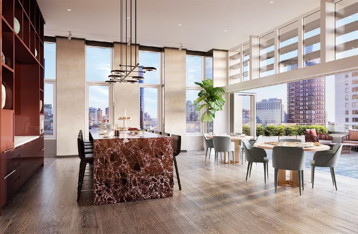 Residents of The Leyton enjoy access to a suite of refined amenities curated by Alexandra Champalimaud, whose work draws inspiration from the grand boutique hotels of the Upper East Side. On the 24th floor, the Brandy Room offers a series of indoor and outdoor spaces for entertaining, including a cocktail terrace, a private dining room with a fully equipped butler’s pantry, a solarium, views of Central Park and an expansive Sun Terrace & Grille overlooking the East River.