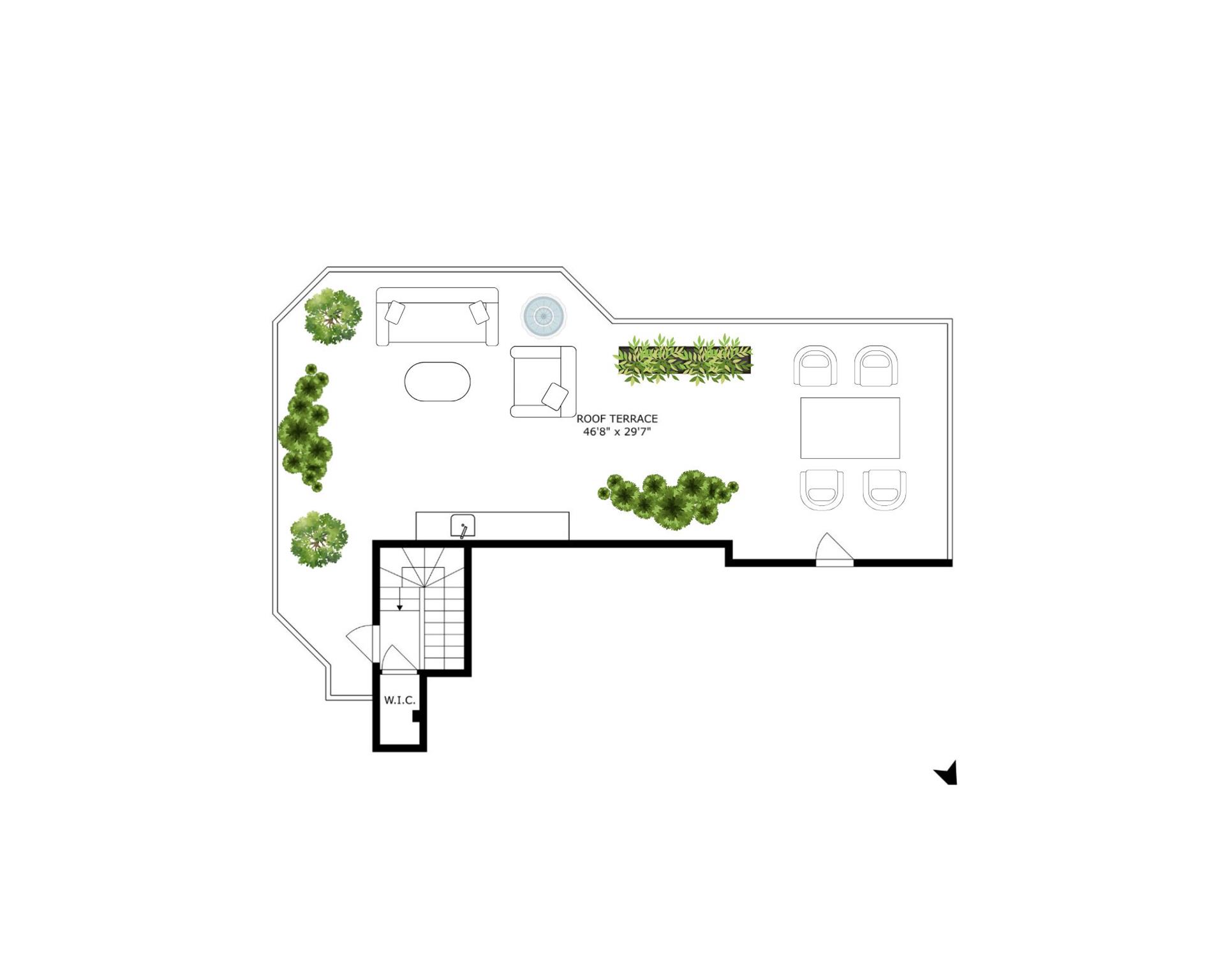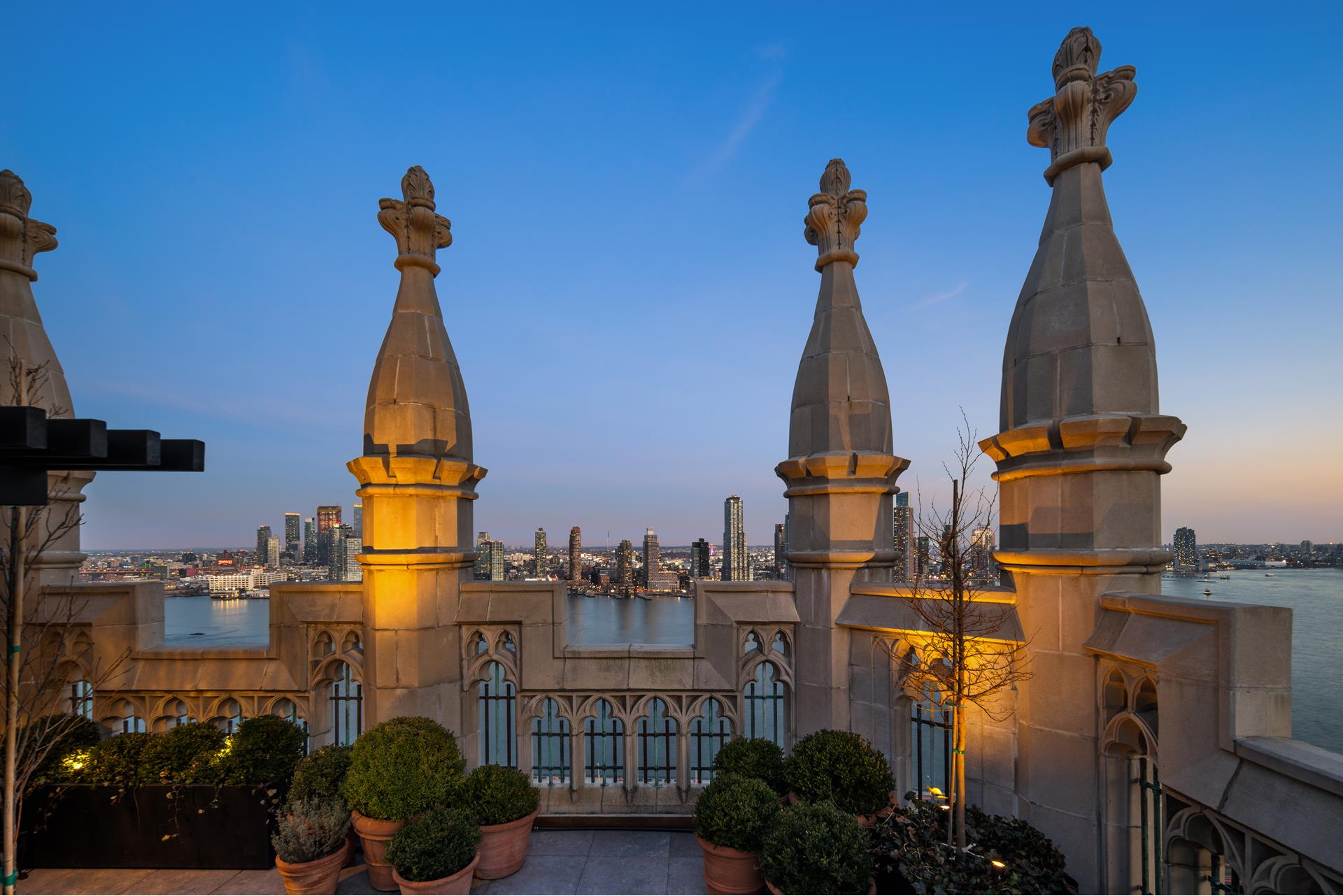 Crowning the residence, the private landscaped roof terrace-reimagined by acclaimed firm Harrison Green-is a breathtaking oasis. Elegant pinnacles, parapets, and quatrefoils surround newly installed pavers and fully restored walls (Local Law 11 compliant). Perfect for sunlit brunches, summer soirées, or starlit evenings, this outdoor sanctuary sets the stage for unforgettable living.