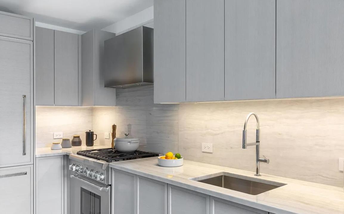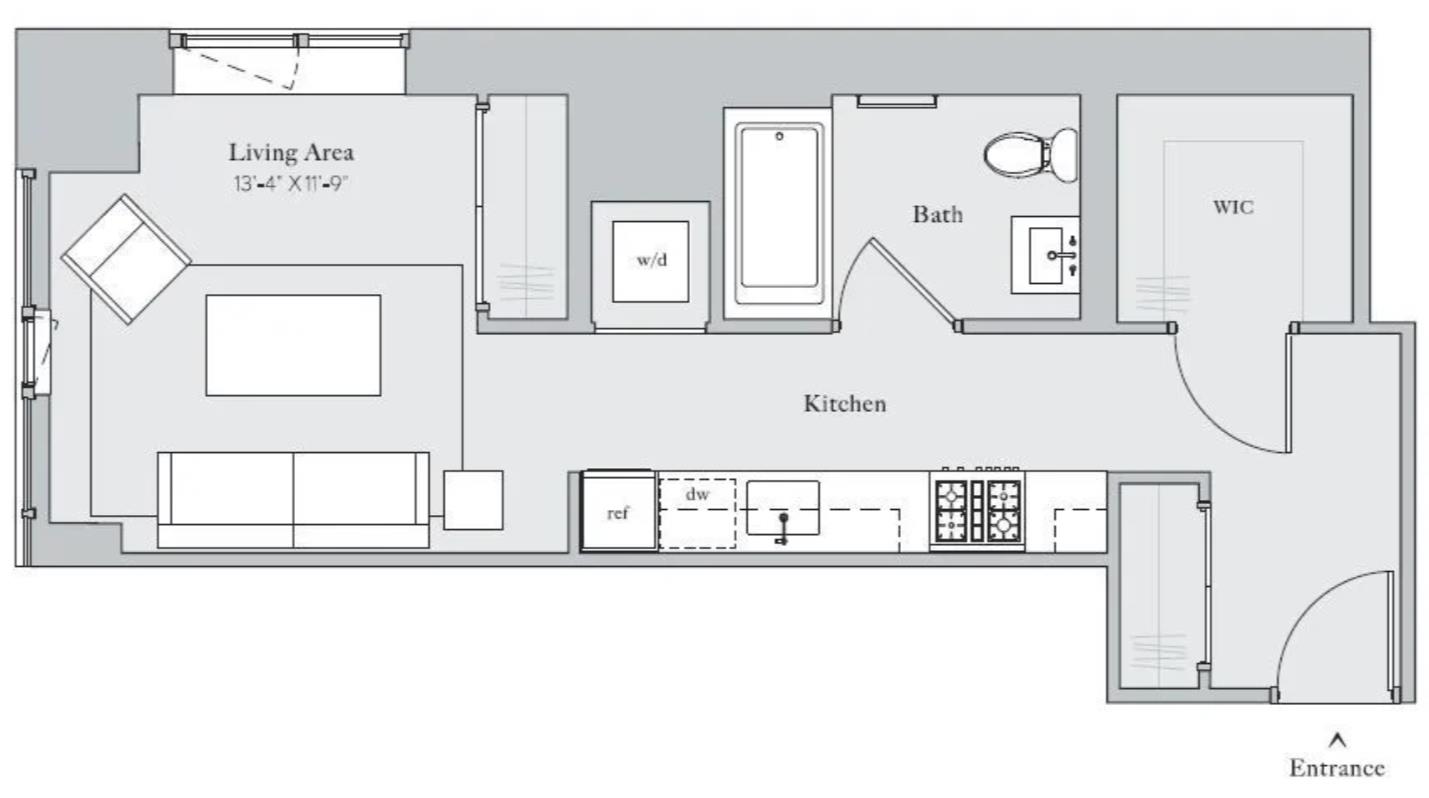 This spacious studio residence offers a corner living area with floor-to-ceiling sound attenuated windows which face North and East. The massive walk-in closet is a dream come true for any New Yorker. The thoughtfully crafted kitchen features Athens Silver Cream Marble countertops and backsplash, custom Oak cabinetry, Range by Thermador, hood by Elica, with Refrigerator and Dishwasher by Bosch. The spa-like bathroom features an warm natural materials including Honed Vanilla Marble and Eagle Grey Limestone with Custom Brass Fixtures by Watermark and a Deep soaking tub by Zuma. This home also features Wide-plank Oak flooring throughout, high ceilings and washer/dryer by Bosch.