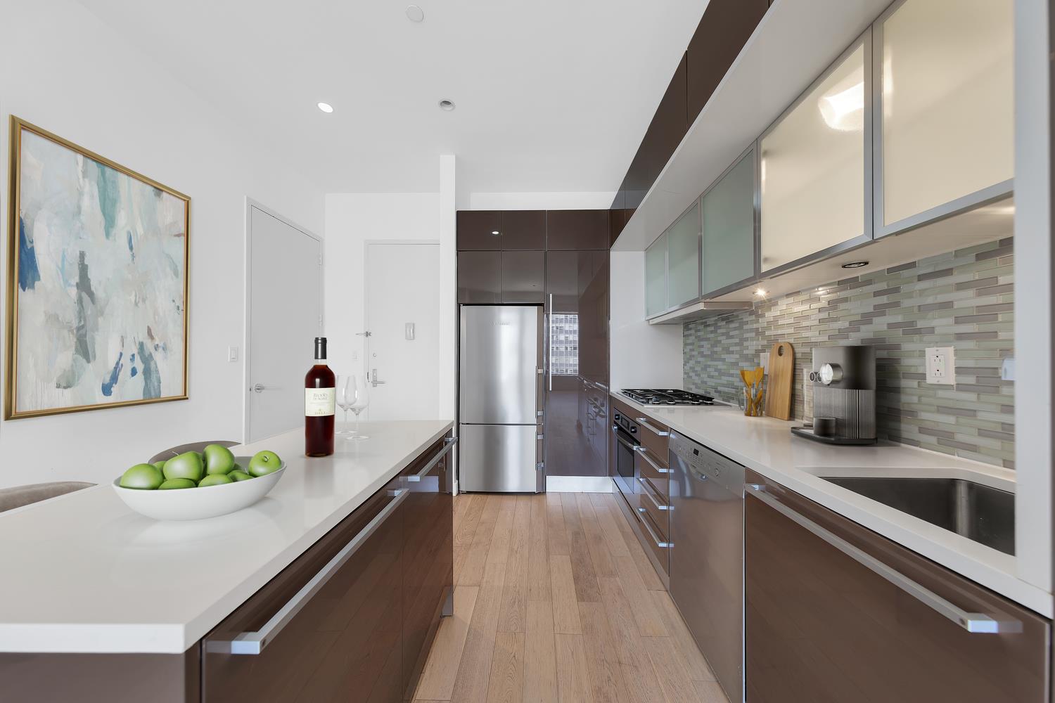 Welcome home to Unit 31N at 75 Wall Street! Enter this generously proportioned home with 10-foot lofted ceilings, with stunning city views, flooded with natural light through the floor to ceiling windows. As you move through the gracious open concept layout into the chef’s kitchen notice the Caesarstone countertops, a kitchen island with room for additional seating, Boffi lacquered kitchen cabinetry, appliances by Sub-Zero, Liebherr, Bosch, Miele, and Electrolux. Entering the spacious 20-foot-long living space, with room for a dining nook, you can comfortably control the ambient temperature with central heating and cooling. The lavish bathroom with Botticino marble flooring, double sinks and a deep-soaking bathtub makes relaxing after a long day easy and convenient. Topping off the majestic home is an in-unit washer and dryer, and tasteful wide-plank Cerused oak flooring throughout.