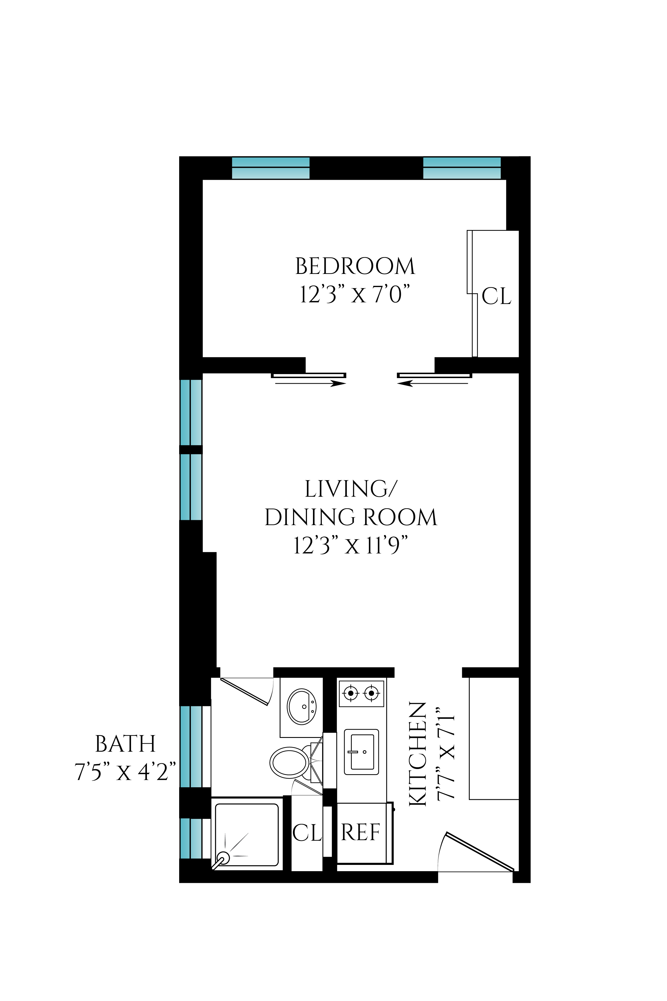 BACK ON THE MARKET! On the top floor of this charming Soho building sits this lovely, bright, and perfectly appointed one bedroom gem. All day sunlight absolutely fills the unit, and high 9’6” ceilings and exposed brick walls add to the overall charm. FIVE windows bring in northern and eastern exposures, including breathtaking views of the Empire State Building. Every inch of this beautiful space is thoughtfully crafted for design and functionality. The open concept kitchen has metal countertops, custom cabinetry with tons of storage and original tin ceilings. A clever window in the kitchen allows for light to come through as well. The living room is separated from the bedroom with stunning antique barn doors inlaid with original etched glass. The bedroom has a large built-in closet, easily fits a queen sized bed and has eastern views stretching all the way to the Bowery. The bathroom is beautifully done as well with pristine white tile and it also has expansive northern views. 64 Macdougal is a well maintained walkup with very low maintenance. Recently the coop completed a total facade repointing and re-coating. It has subway tiled hallways and lobby, with bright red apartment doors. There is also a charming common patio for the residents to enjoy. Enjoy some of the best restaurants in the city including 12 Chairs, Roscioli’s, Raoul’s and The Corner Store. Pets permitted, as well as subletting after two years. A washer/dryer unit may be installed in the unit with board approval. Truly a special apartment in a very special building on one of the very best blocks in Soho.