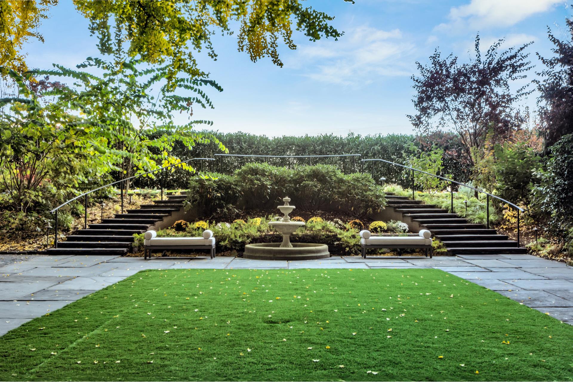 Seclusion and privacy begins with the limestone Porte Cochere with circular driveway. The concierge and doorman greet you at the beautiful wrought iron doors to the stunning lobby. Before you, glass French doors open to the manicured terraced gardens.