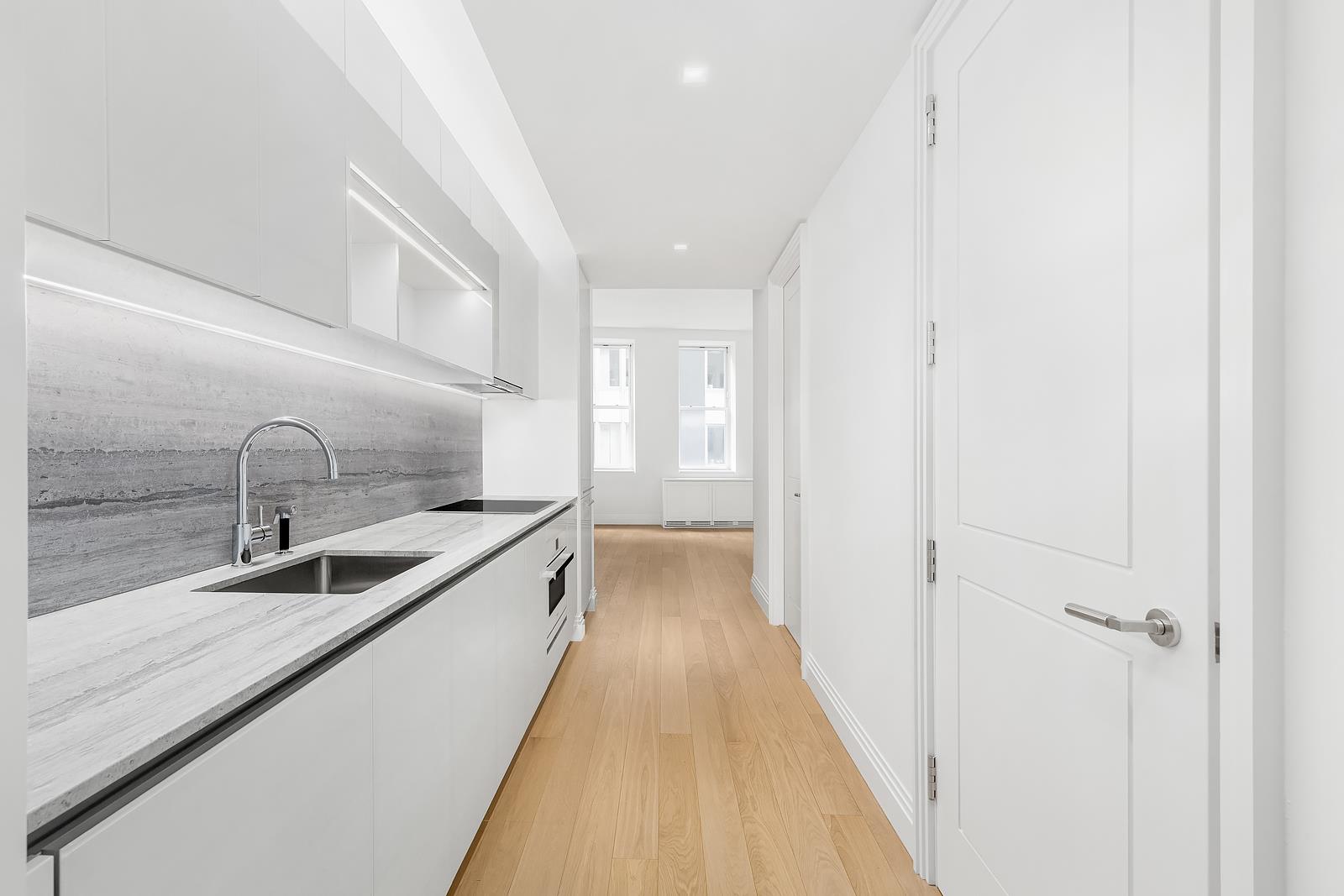 Move In Ready! Residence 929 is an alcove studio with home office at One Wall Street. 929 is a spacious layout, alcove studio home with a separate kitchen. Located in the Eastern facing section of the building, this home offers natural light, and ample closet space. Custom kitchens and baths pair seamless technology with classic elegance. The Kitchen features Oceanwood marble slabs which rests on custom Aran Cucine cabinetry, accented by white glass panels and satin nickel finishes and is the perfect blend of beauty and function.
