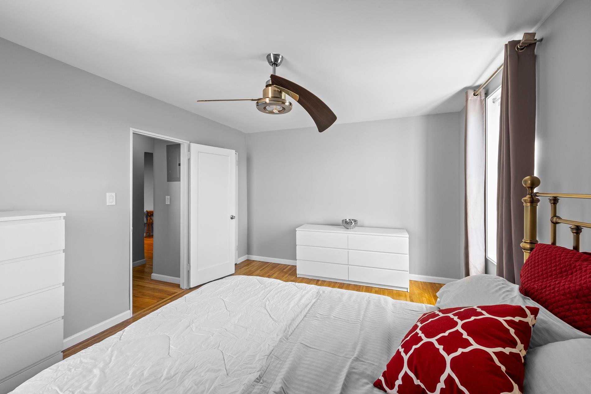 The spacious layout includes a sprawling living room perfect for entertaining or relaxing, and a king-size bedroom that easily accommodates additional furniture. The windowed, modern eat-in kitchen is a true standout, featuring granite countertops, stainless steel appliances, and a sleek design ideal for everyday living. The windowed bathroom feels like a private spa retreat, with elegant modern finishes and a calming ambiance. Custom-fitted closets add practical storage and thoughtful design details throughout.