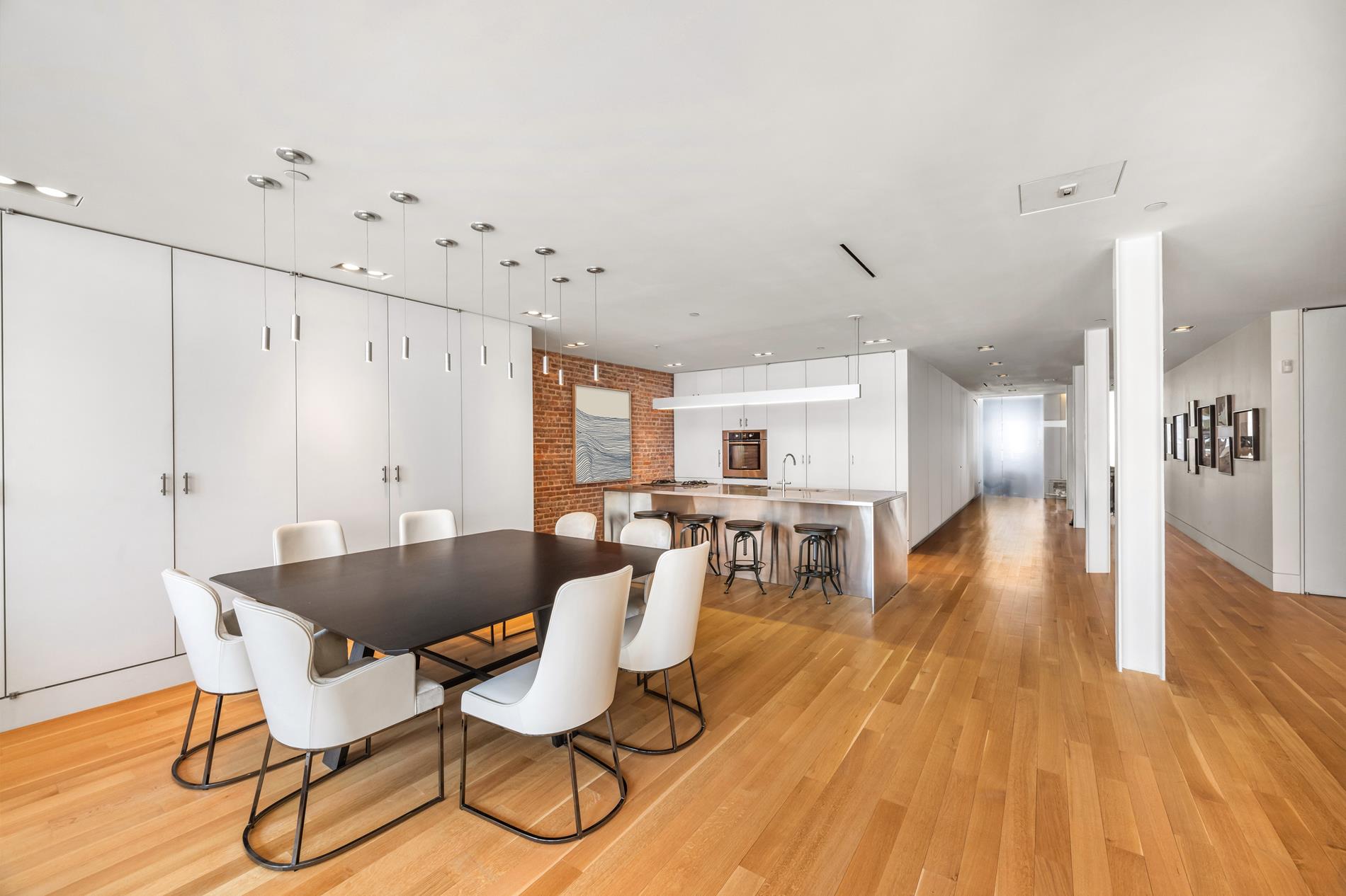 A private key-locked elevator opens directly into an expansive living space flooded with natural light throughout the day. The sleek, open kitchen is a chef's dream, outfitted with a stainless steel island and breakfast bar, top-tier appliances, and custom floor-to-ceiling matte lacquer cabinetry. A dramatic gallery corridor - ideal for displaying art - leads to the private bedroom wing, where the primary suite offers a luxurious dressing area with his and-hers closets and a spa-quality stone-and-marble bathroom featuring a soaking tub and separate stall shower. Additional features include custom recessed lighting, minimalist flush doors and cabinetry, central air conditioning, and wide-plank hardwood floors. This loft has been barely lived in, lightly used as a pied-a-terre, and is available for purchase fully furnished for a seamless move-in opportunity. A huge private storage room in the building's basement is also included. Low common charges and real estate taxes make this an exceptional opportunity to own a true TriBeCa classic, with easy access to multiple subway lines, world-class dining, shopping, and everything Downtown has to offer. 46 White Street is an exclusive boutique condominium offering video security and private storage.