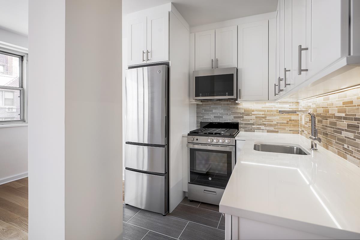 Newly renovated alcove studio sponsor apartment is now available for purchase. 14J has a brand new kitchen with stainless steel appliances, Caesar-stone counters and beautiful white cabinetry. The new bathroom has all new fixtures, a giant custom vanity with plenty of storage. The apartment has new floors throughout, and a large walk in closet. There is no board approval required.