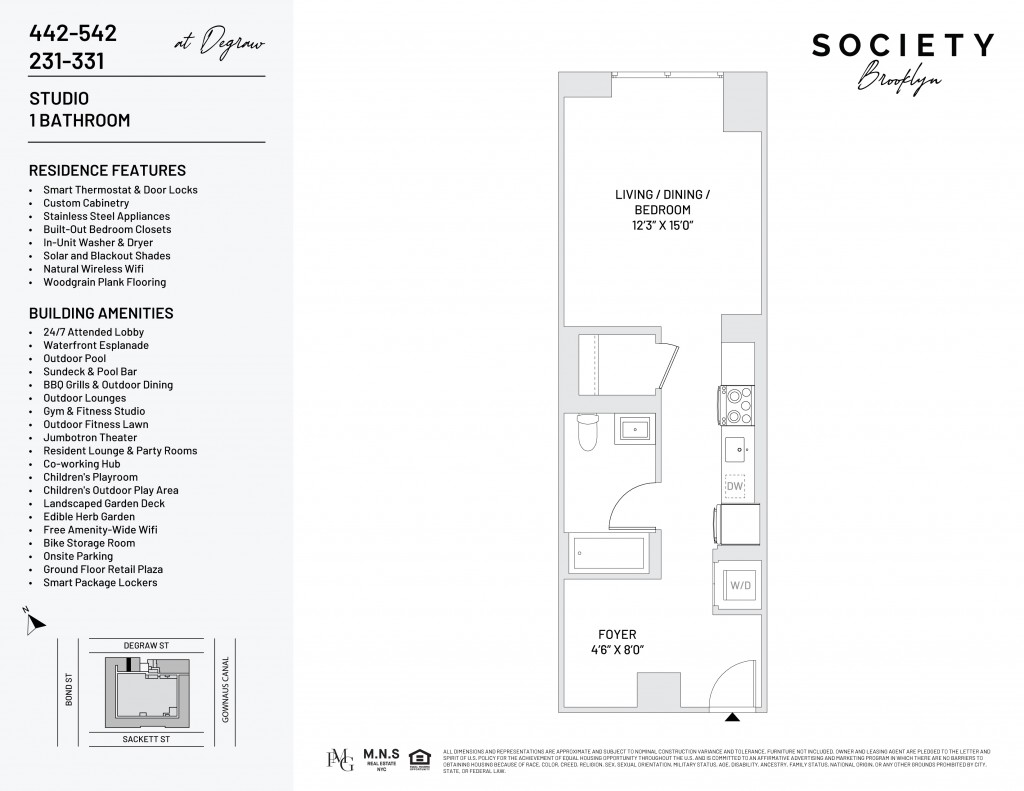 ***Now Offering 2 Months Complimentary on a 17 Month Term***Welcome to Society Brooklyn! Modern Elegance with Iconic Views on Brooklyn’s newest Waterfront Esplanade!Discover a new level of luxury at Society Brooklyn, where urban sophistication meets modern comfort along Brooklyn’s newest waterfront esplanade. Nestled at the intersection of Carroll Gardens and Park Slope, our residences offer an unparalleled lifestyle designed for those who crave both style and substance.Our thoughtfully crafted residences blend sleek, modern finishes with warm, livable design, perfecting the balance between elevated aesthetics and everyday functionality. Expansive windows flood each home with natural light, while select units offer breathtaking skyline and canal views that bring the beauty of Brooklyn right into your living room.Residences feature:• Spacious open concept layouts• Custom black oak kitchen with premium stainless-steel appliances • LG in-unit washer/dryer • Oversized windows and wide-plank flooring• Spacious Bathrooms with LED mirror light• Window roller shades: white 5% light filtering with blackout in bedrooms• Amazing ViewsSignature AmenitiesFitness & Wellness:Stay active in our expansive modern fitness center, including:• Cardio studio• Yoga & meditation studio• Training floor with a wide range of new Technogym strength and cardio equipmentDitch the private gym membership. We’ve got you covered for any workout need.Co-Working Hub:• Multiple private offices available 24/7 for residents• Designed to facilitate a comfortable and convenient work-from-home without the need to be in your homeUnwind or connect in multiple resident lounges, designed for both social gatherings and quiet relaxation.Our sprawling outdoor amenity deck is your warm-weather escape:• Resort-style pool with sundeck• Pool bar & fire pits• BBQ grills with al fresco dining setups• Outdoor yoga, fitness, and lounge zonesExperience modern elegance with iconic views• Rooftop terrace offering panoramic, 180-degree city views• Many units boast stunning skyline viewsDaily Convenience• Attended parking garage• Secure bike storage• Package room & concierge services• 24/7 Lobby ConciergeWaterfront Park & Esplanade• Access to an expansive waterfront park and esplanade with landscaped walking paths, seating areas, and stunning views • A vibrant gathering place with dining options, shops, and embracing the arts communityEqual Housing Opportunity.Photos, Videos, and/or 3D tours may reflect a similar unit rather than the specific listing.*Price shown is Base Rent. Residents are required to pay: At Application: Application Fee ($20.00/leaseholder, nonrefundable); At Move-in: Refundable Security Deposit:$1,000 for qualified applicants and up to one months rent/unit); Monthly: Community Amenity Fee ($95.00/leaseholder- optional); Electric-3rd Party (usage-based). Please visit the property website for a full list of all optional and situational fees. Floor plans are artist’s rendering. All dimensions are approximate. Actual product and specifications may vary in dimension or detail. Not all features are available in every rental home. Please see a representative for details.