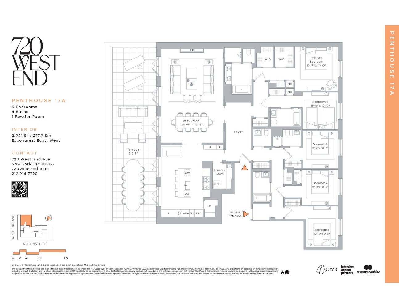 Designed by renowned architect and designer Thomas Juul Hansen, Penthouse 17A is a sprawling FIVE-bedroom, four-bathroom with powder offering, and an 870sqft private terrace with views to the west of the Hudson River and beyond and to the east from all five bedrooms. Highlighted by the timeless character of yesterday and the compelling minimalist styling, modern conveniences and technologies of tomorrow, each home at 720 West End Avenue is unique. Celebrate an abundance of natural light, and open, flowing space in each residence.