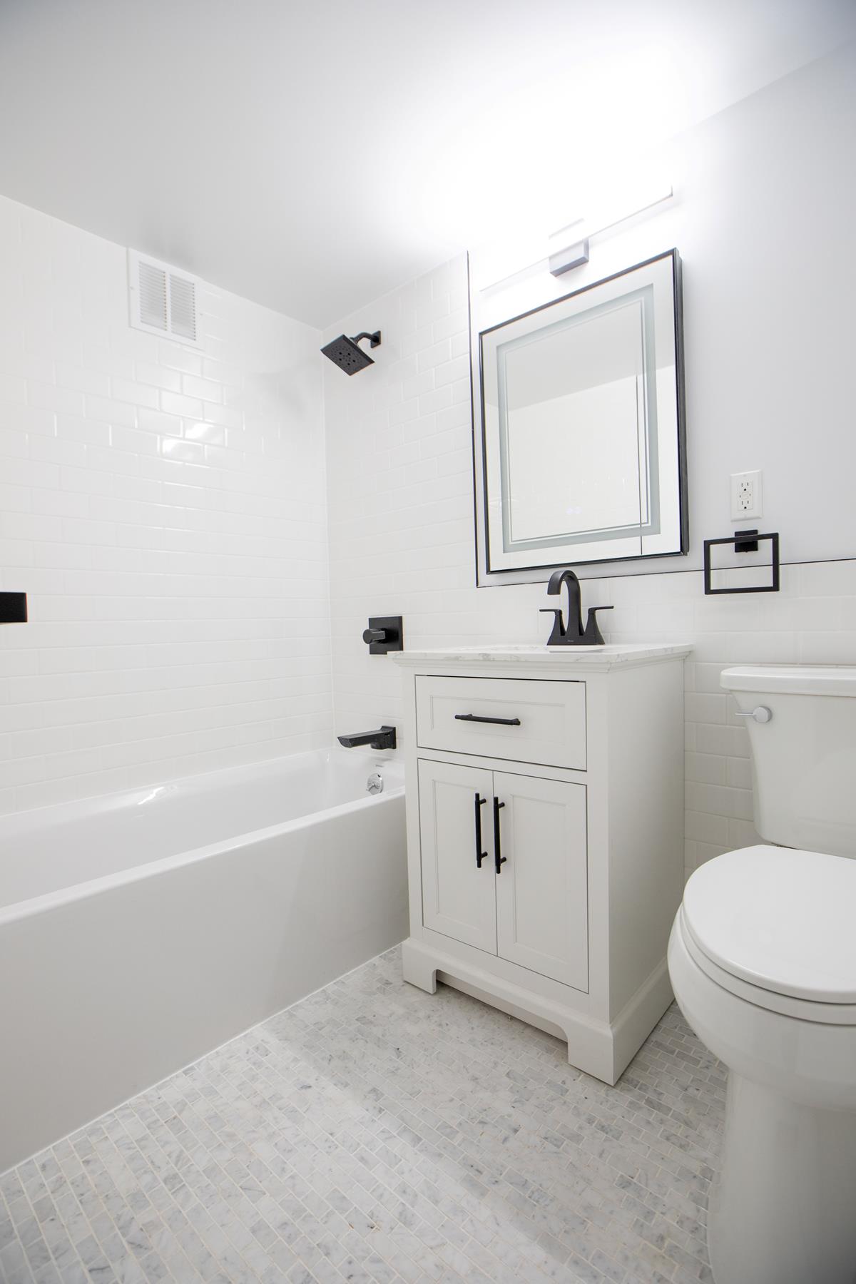 Step into the the beautifully renovated kitchen, where white caeserstone countertops and sleek white cabinetry creates a crisp, clean aesthetic. The full-size stainless-steel appliances and ample cabinetry space make this kitchen as functional as it is stylish.