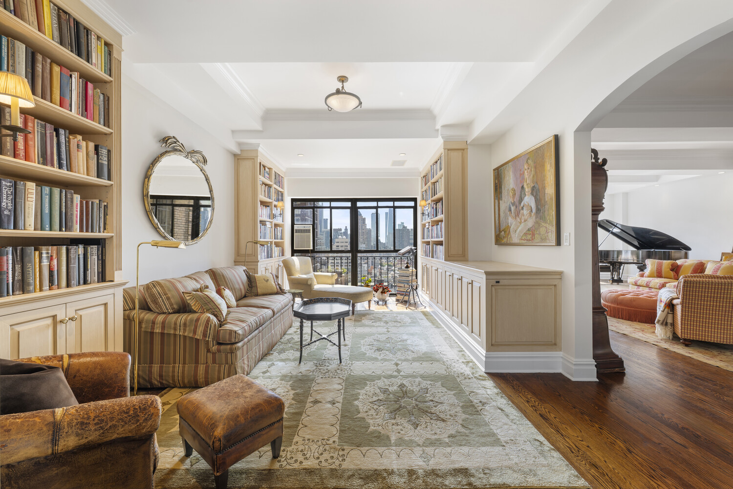 The home also carries a remarkable artistic history. Once the home of legendary Broadway composer Charles Strouse and his family, whose beloved works include Annie and Bye Bye Birdie, this residence holds a special place in New York's cultural history. The apartment's sunken living room-sometimes transformed into a theatre space-served as a creative haven where Strouse wrote, composed, and entertained family, fellow artists and friends, infusing the home with a rich artistic spirit that endures to this day.