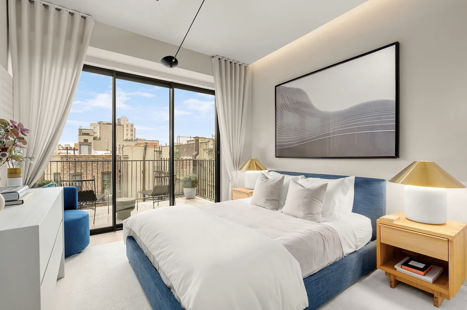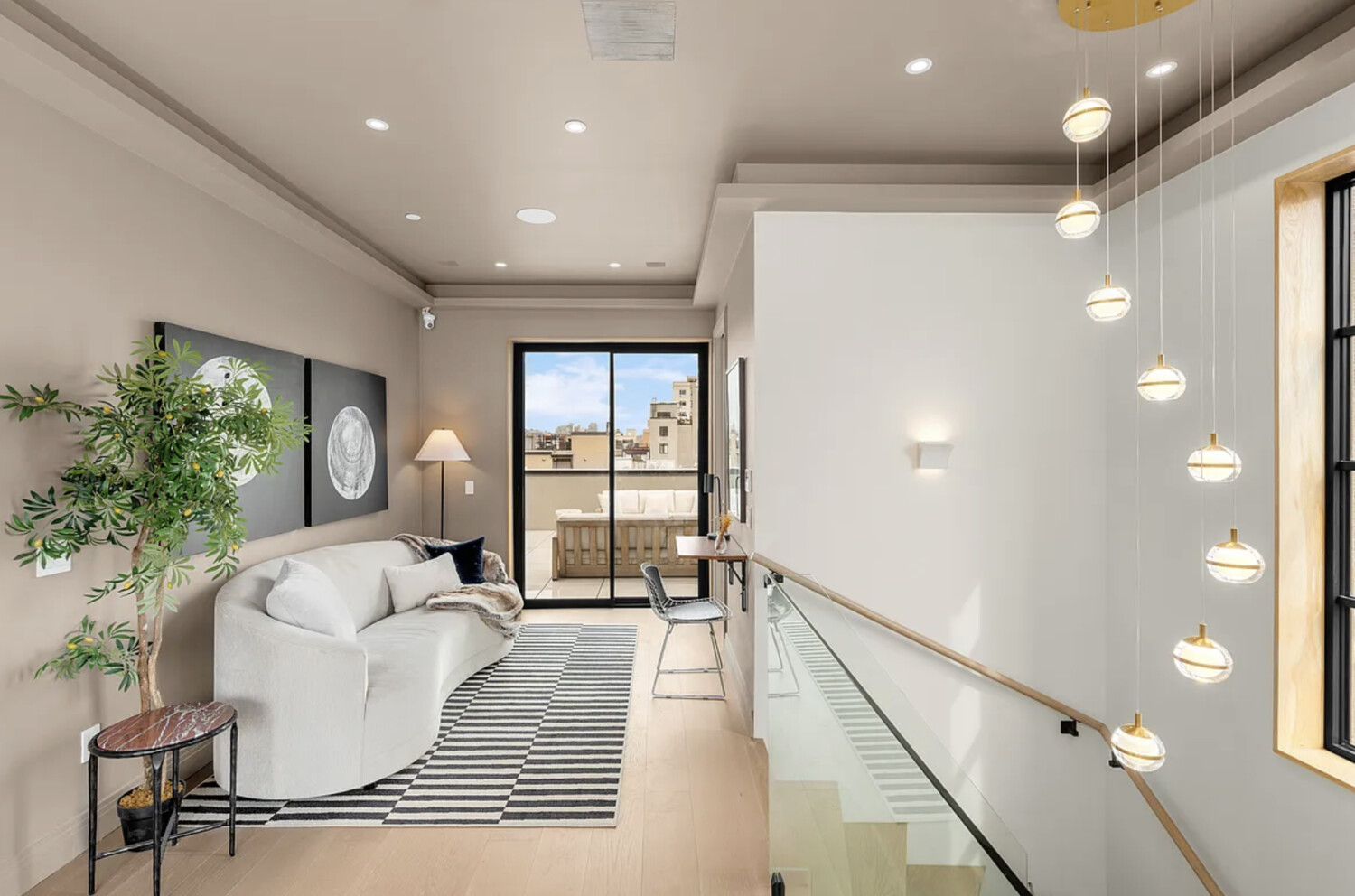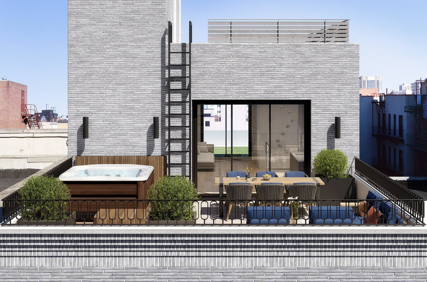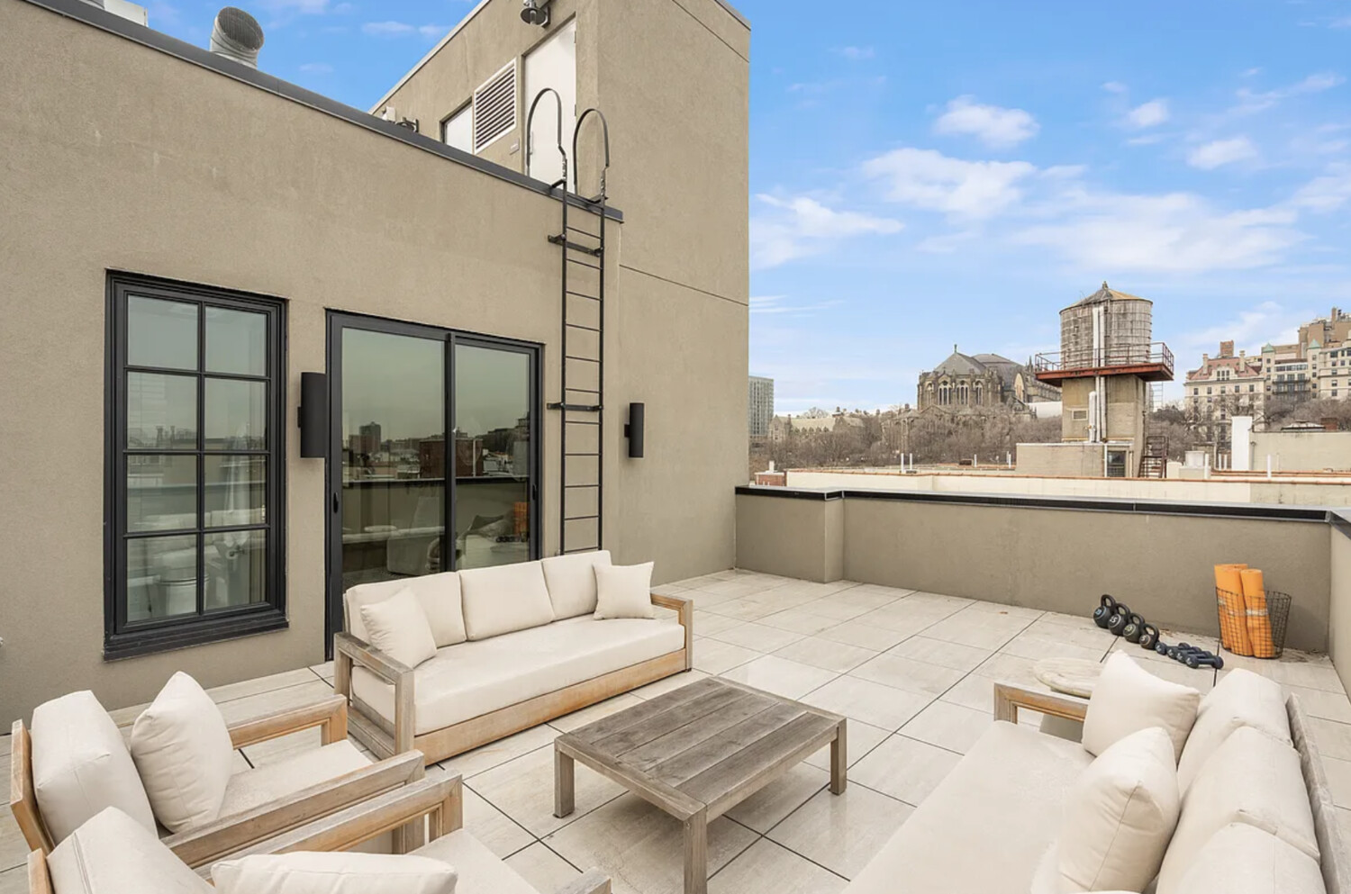 The main level (6th floor) hosts two bedrooms and two full baths, lower level (5th floor) boasts two additional south-facing bedrooms, a dual-vanity full bath, and an expansive walk-in closet. Two sprawling terraces with breathtaking views of Morningside Park, South Harlem, and St. John the Divine. Designed for both relaxation and entertainment, the terraces are equipped with water, power, and a hot tub.