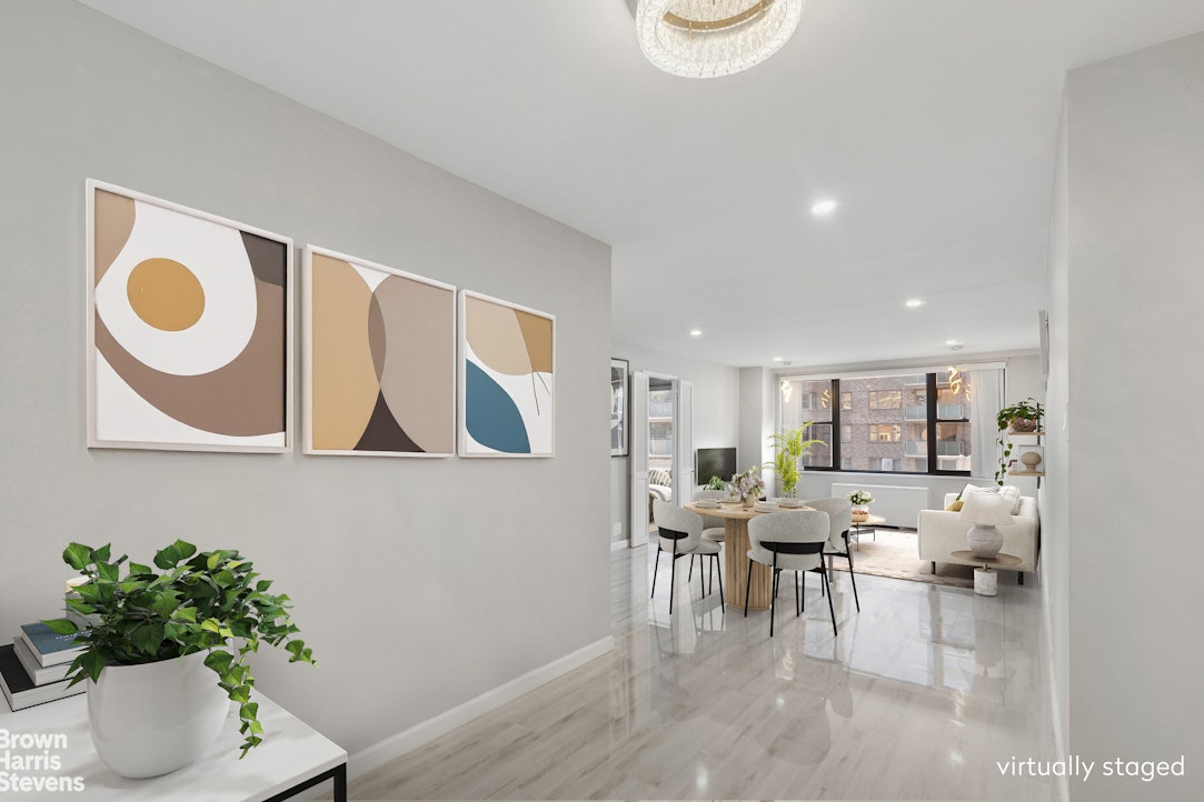 Nestled in the vibrant heart of the city, this stunning coop apartment offers a truly unique living experience , providing spectacular south and east-facing views that will leave you in awe every day.
