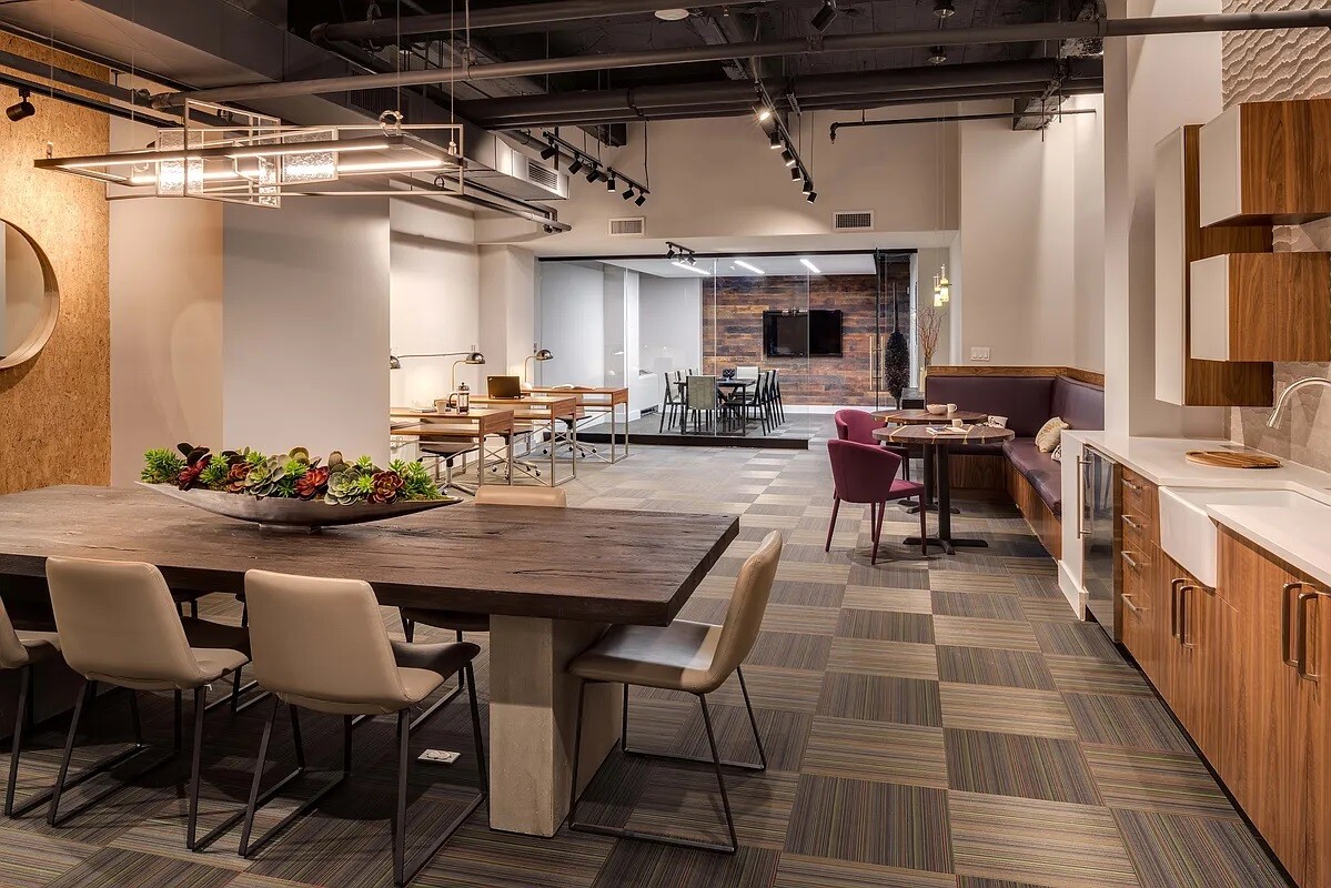 The Lounge offers a kitchen area complemented by a full kitchen, coffee machine, foosball, and comfortable couches.