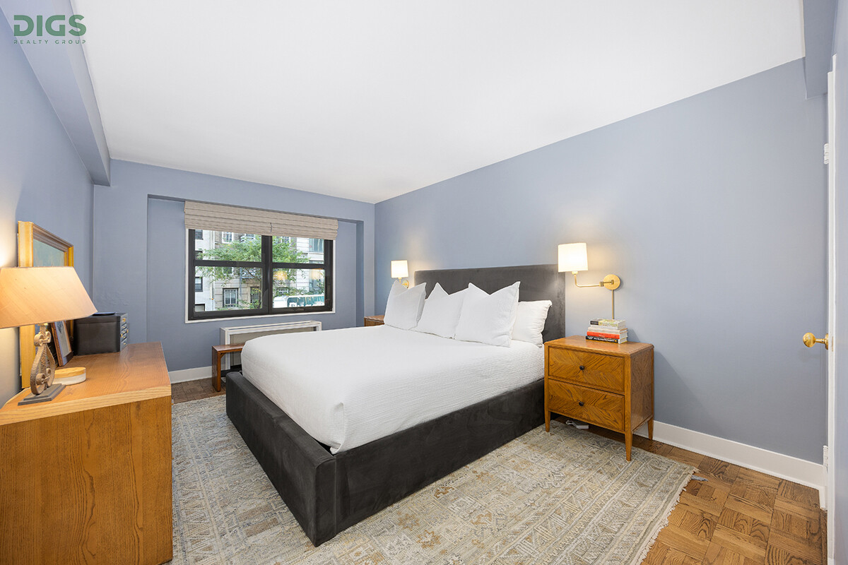 Move right into this oversized 1 bedroom, 1 bathroom home with tasteful finishes and exceptionally low maintenance in a full-service building. Positioned south-facing on a double- wide street, the apartment enjoys lovely treetop views and natural light throughout the day.
