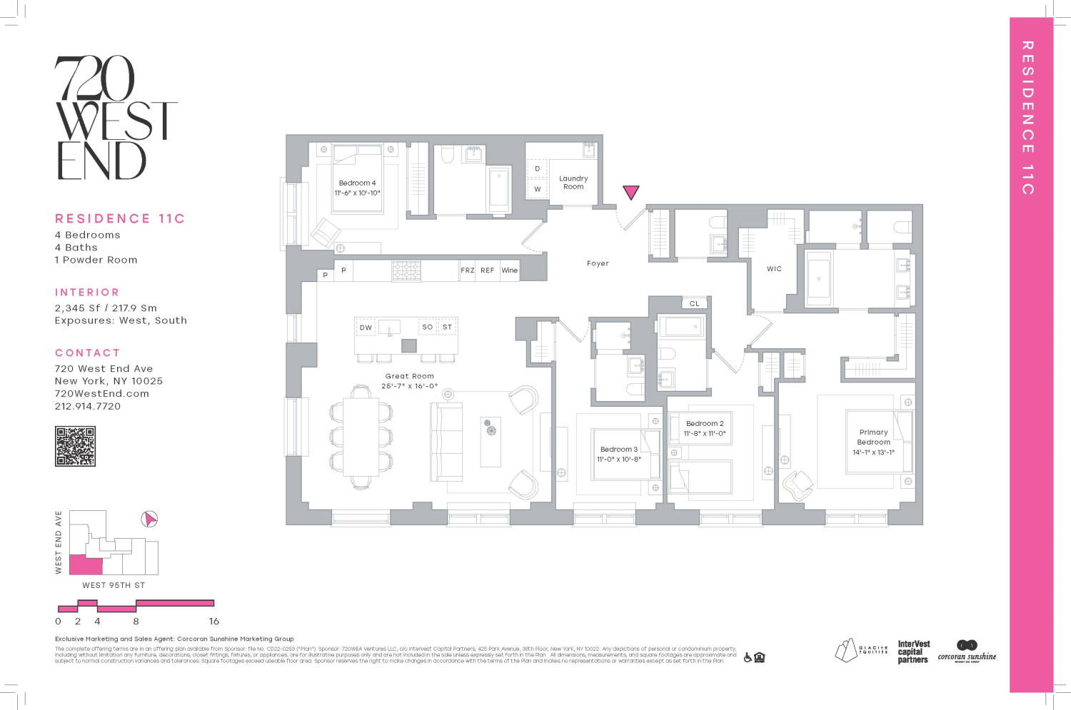 Designed by renowned architect and designer Thomas Juul Hansen, Residence 11C is a corner four-bedroom, four-bathroom with powder room facing south and west with views of the Hudson River and tree-lined streets of the Upper West Side. Highlighted by the timeless character of yesterday and the compelling minimalist styling, modern conveniences and technologies of tomorrow, each home at 720 West End Avenue is unique. Celebrate an abundance of natural light, and open, flowing space in each residence.