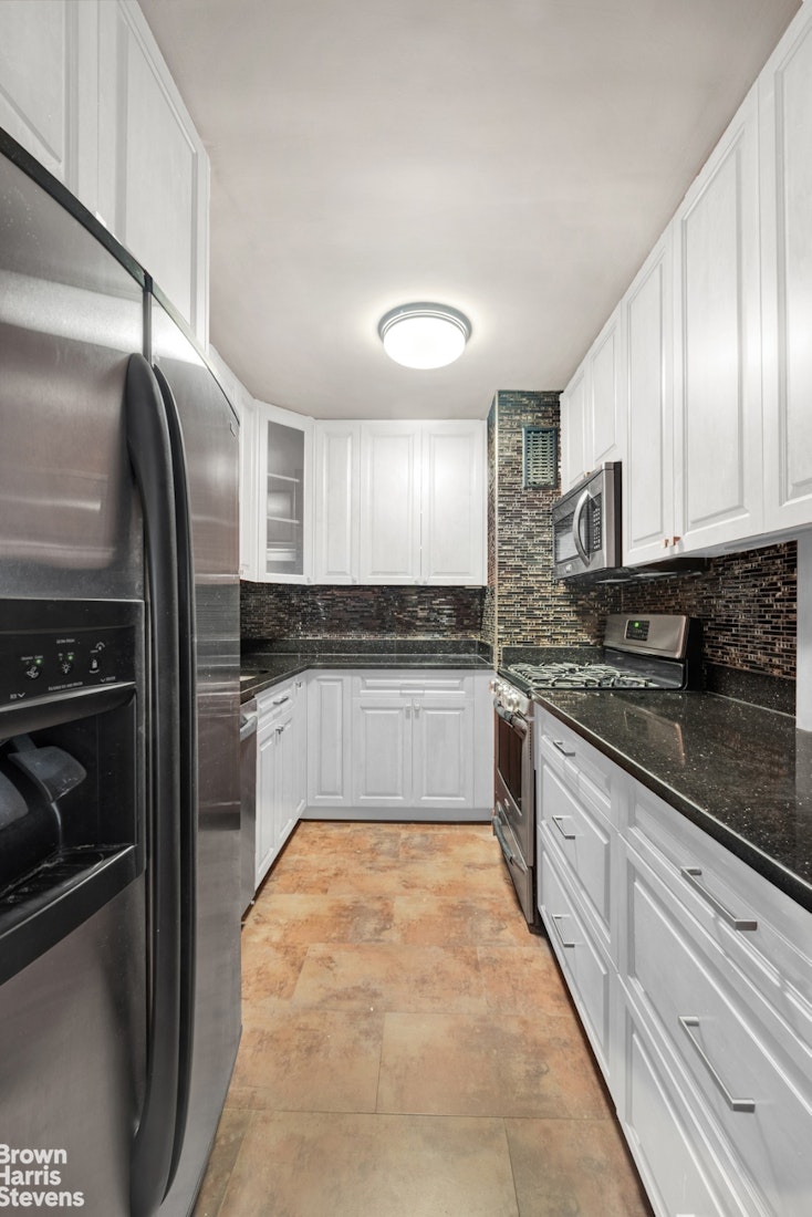 Stainless steel appliances, crown molding, solid-core maple doors, California Closets simply no expense was spared in this spacious and sunny apartment's painstaking renovation. Open the door and take in a gracious gallery foyer with artwalls ready to accommodate your personal art collection and two large closets offering abundant storage. To the left, the brand-new chef's kitchen features meticulously crafted custom cabinetry, beautiful stone counters and glass tile backsplashes surrounding full-size stainless steel appliances, including a gas range, dishwasher and microwave.