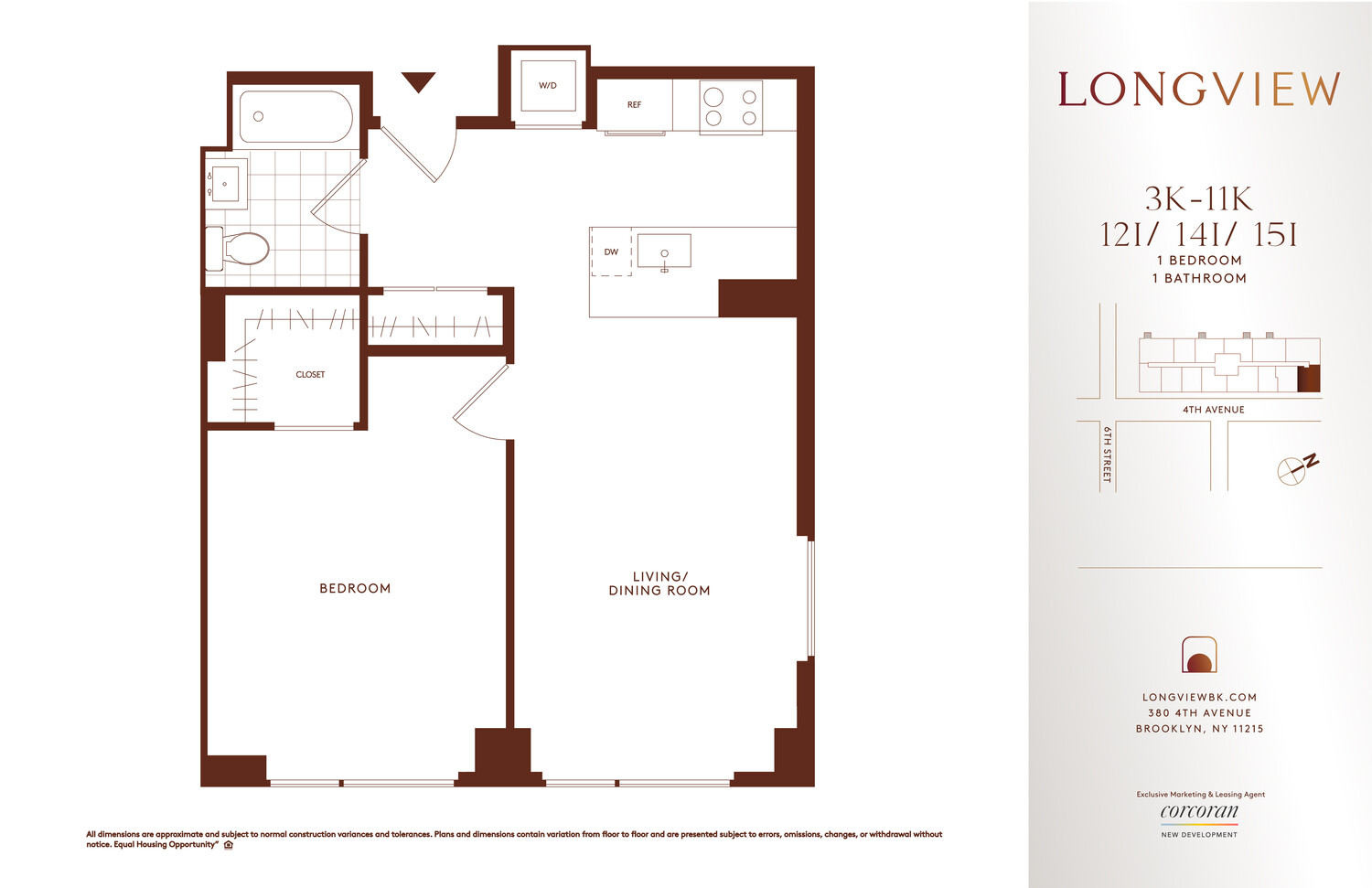Northeastern Facing Designer one bedroom corner unit with Park Slope streetscape views only minutes from the F, G and R Subway lines and across from JJ Byrne / Washington Park. Contact a Corcoran New Development Representative today for more information and to schedule a private tour.
