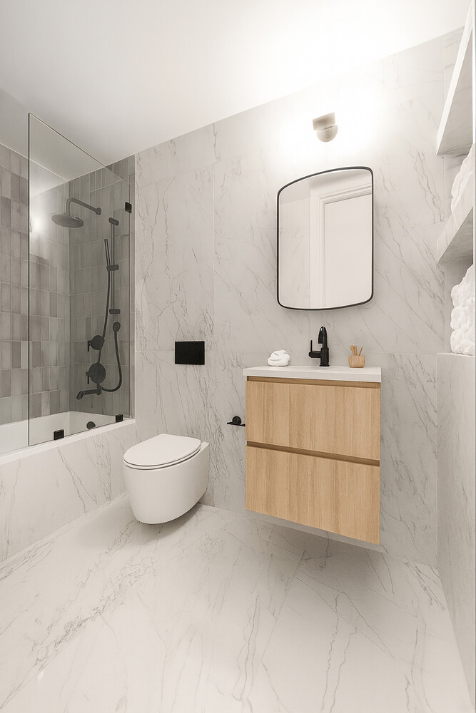 Residence 3F is a well-designed 1-bedroom, 1-bathroom home with 482 interior square feet and a private 34 square foot northwest-facing balcony. 11 foot tall ceilings and large windows contribute a sense of volume and light throughout.