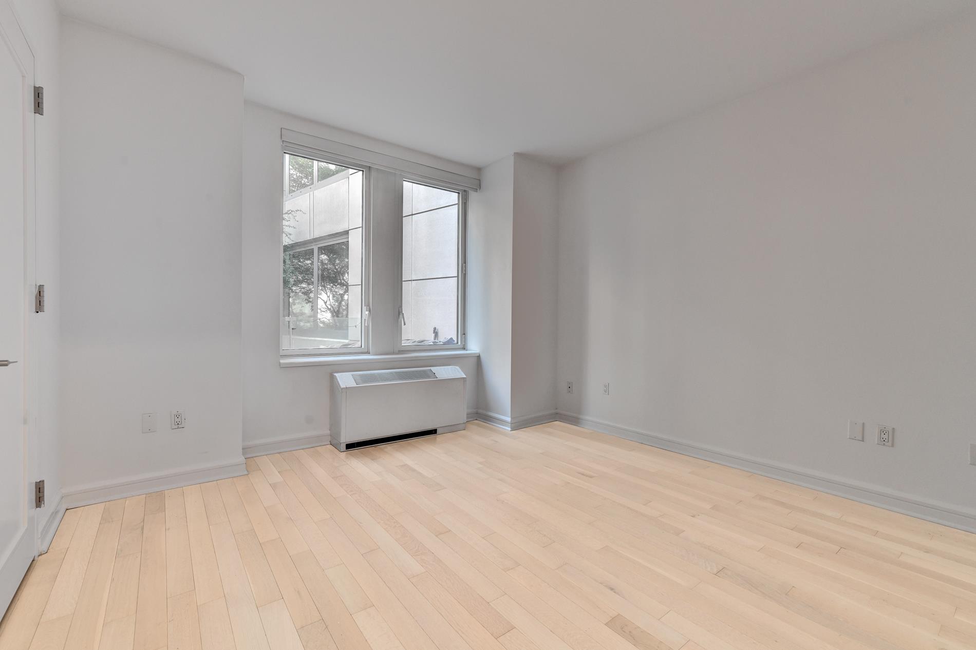 Bathed in natural light, this elegant one-bedroom home offers a 264-square-foot private terrace with beautiful eastern views of the landscaped garden. Inside, the residence showcases refined oak flooring and an open-concept kitchen outfitted with top-tier appliances from Sub-Zero, Viking, and Miele, complemented by marble countertops, a matching backsplash, and glossy lacquer cabinetry.