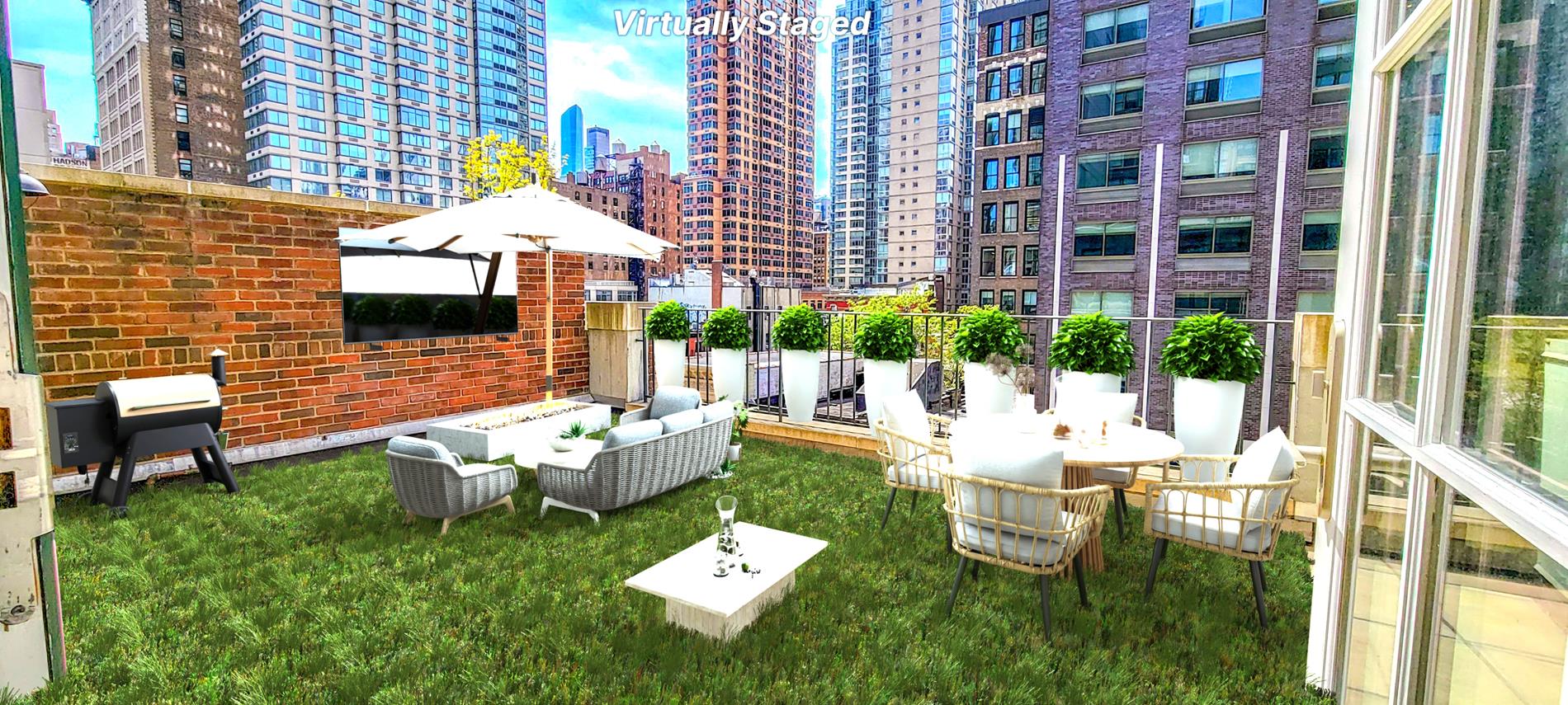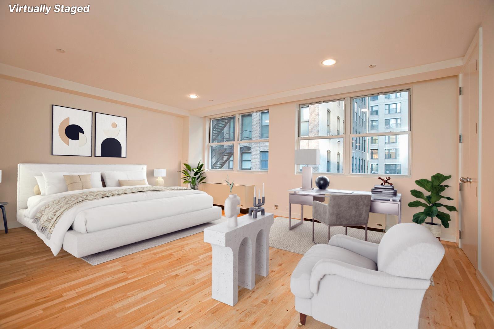 Welcome to the Flower House Condominium — a boutique gem nestled in the heart of Manhattan’s vibrant Flower District. This rarely available penthouse duplex offers soaring 17-foot ceilings, expansive tilt-and-turn thermal windows that flood the living room with natural light, a spacious private terrace, and an additional balcony.