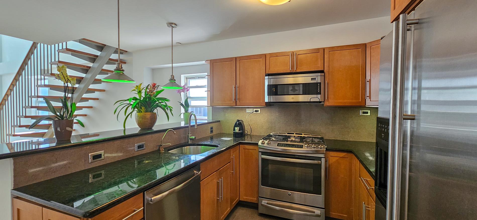 Designed for both comfort and style, the loft features a cozy wood-burning fireplace, a chef’s kitchen with a breakfast bar, premium stainless steel appliances, and a convenient garbage disposal. Luxurious marble bathrooms with sleek recessed vanities add a modern, refined touch.