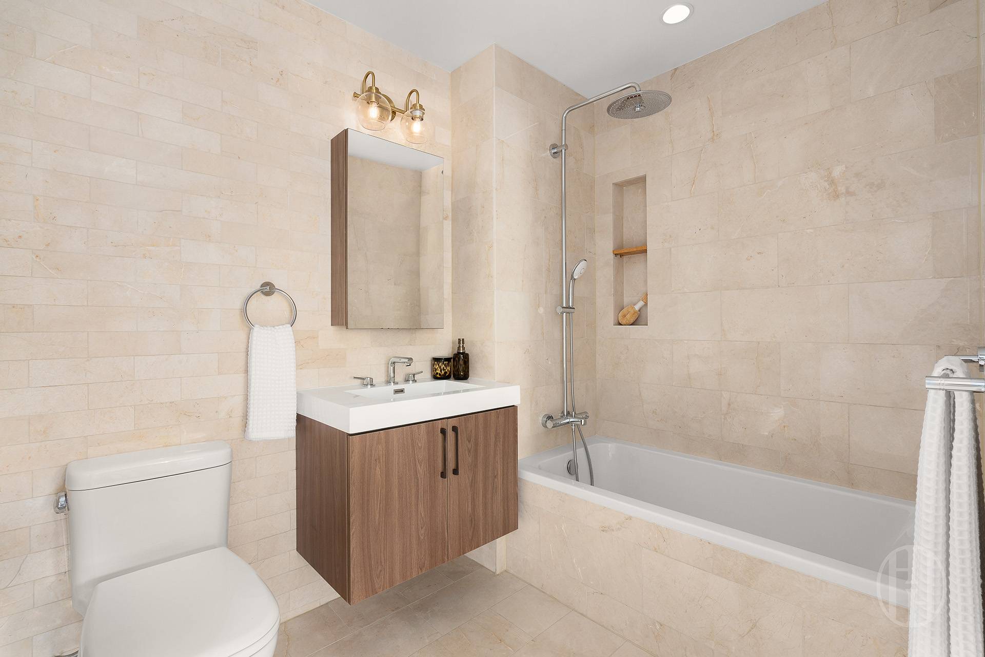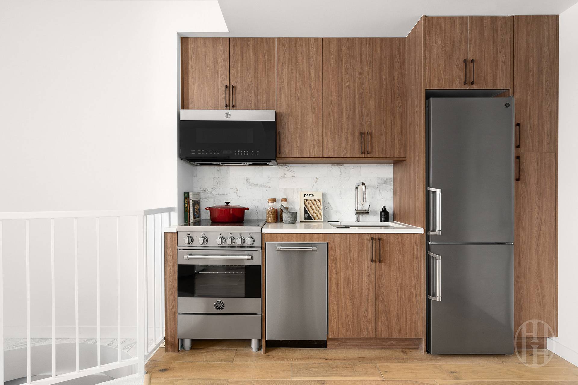 Kitchens are designed to entertain, with Bertazzoni and Bosch appliances, externally vented hoods, wine fridges, quartz countertops, marble backsplashes, and custom soft-close cabinetry. Marble bathrooms are appointed with Kohler and Grohe fixtures, and vanities offer built-in storage. Every home is equipped with a Bosch washer and dryer for everyday ease.