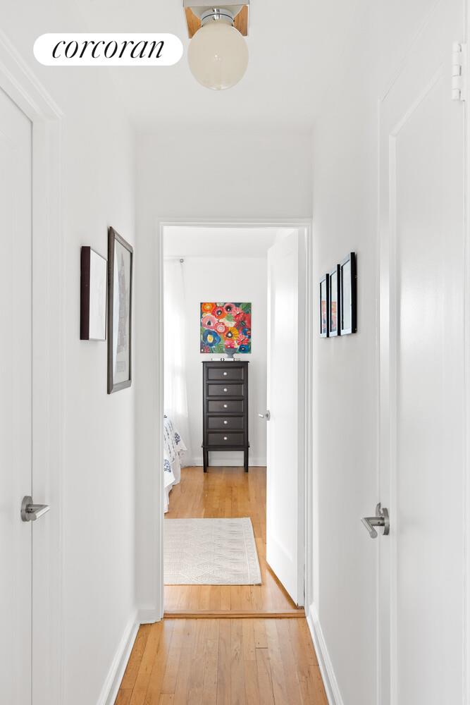 The bathroom has been thoughtfully updated with a new vanity, medicine cabinet, sconce, and faucet. Throughout, you'll find gleaming hardwood floors, generous wall space for art lovers, and four roomy closets offering exceptional storage.
