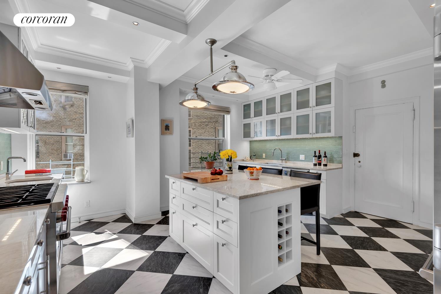Elegant prewar details-high ceilings, pristine moldings, and original hardwood floors-blend seamlessly with modern luxuries: a stunning expanded eat-in chef's kitchen with top-line appliances and butler's pantry, through-wall A/C in most rooms, en-suite baths, washer/dryer, and excellent storage.
