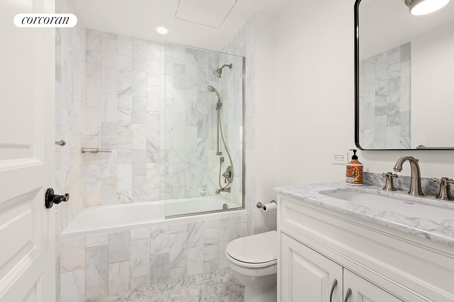 Every bedroom has an en-suite bath, and each is equipped with high-end spa amenities and select high-end materials. The primary bath is sublime with radiant heated floors, stunning marble finishes, spa shower, free-standing deep-soaking tub, double vanities, laundry, and brass fixtures.