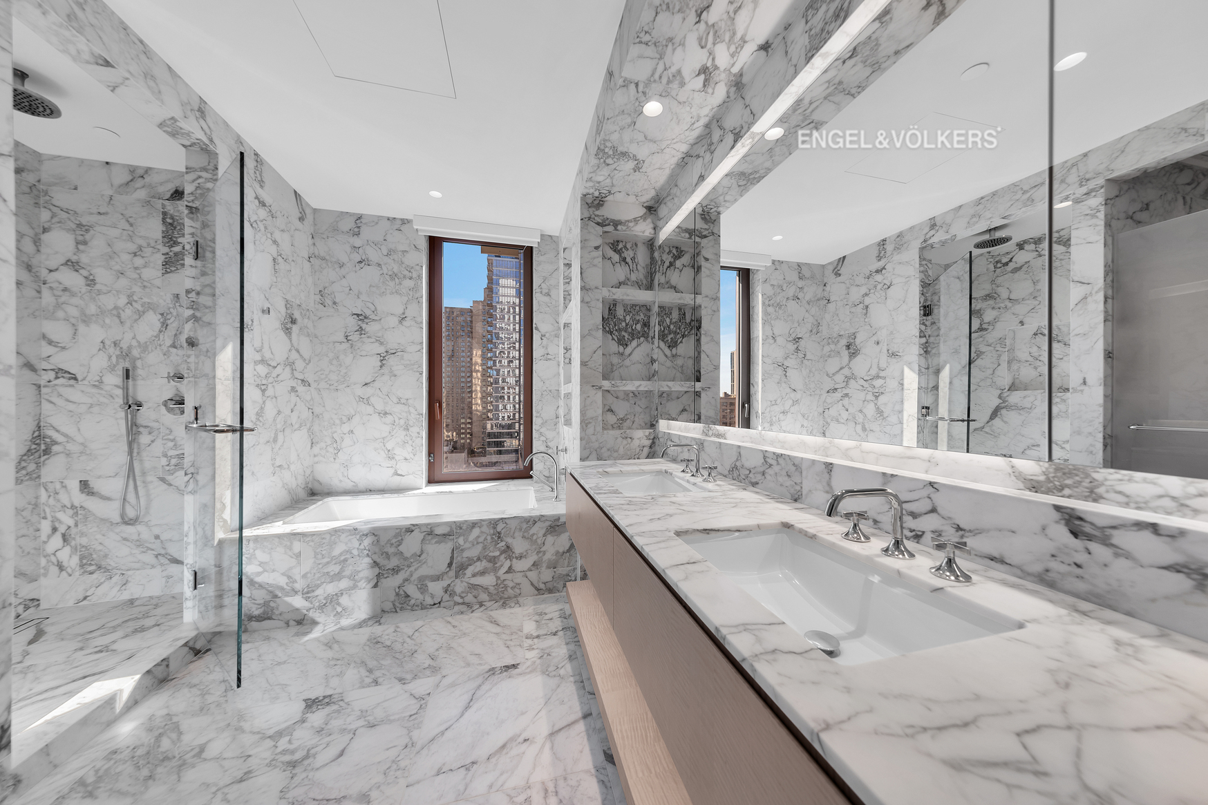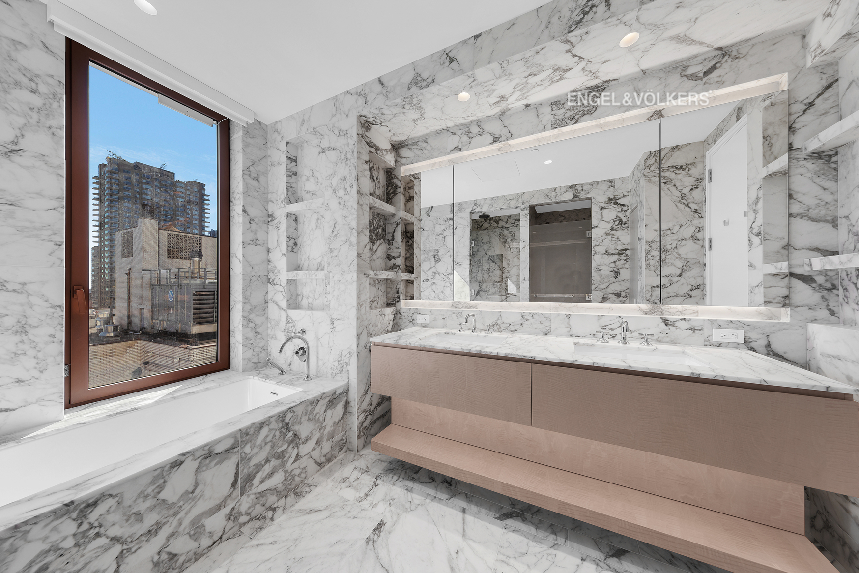 • Be the first to live in Residence 12A at THE 74, a half-floor, 2,171-square-foot three-bedroom, three-and-a-half-bath home offering beautifully proportioned rooms and sweeping south, east, and west exposures. Floor-to-ceiling Italian windows fill the home with natural light, highlighting the elegant stained oak floors and sophisticated finishes throughout. The expansive living and dining areas flow seamlessly into the windowed kitchen, where bespoke stained ash cabinetry with fluted glass uppers is paired with polished Bianco Ice marble countertops and backsplash. A suite of top-of-the-line Miele appliances includes a speed oven and gas cooktop, while a Sub-Zero wine refrigerator and stainless-steel Pro-Chef sink with Dornbracht brushed champagne faucet complete the space. The serene primary suite enjoys eastern exposure and features two large custom closets along with a luxurious five-fixture bath clad in Calacatta Vagli marble. The bathroom includes radiant heated floors, a soaking tub, an enclosed shower, a custom Sycamore wood vanity, and a honed marble countertop. Two additional bedrooms each offer en-suite bathrooms and custom-built closets. Secondary baths are finished in European porcelain with custom illuminated cabinetry and Didimon Light marble vanities, while the powder room is clad in distinctive Pink Namibia marble with brushed platinum Dornbracht fixtures. Additional features include powder room, abundant closet space, custom-built storage, a washer/dryer, and motorized solar shades throughout the home, with motorized blackout shades in all three bedrooms. Designed by the architecture firm Pelli Clarke & Partners, THE 74 is a boutique condominium at 201 East 74th Street that rises with a slender, sculptural silhouette and a facade of creamy ivory terracotta tile framed by antiqued bronze window casings, bringing a modern interpretation of Manhattan Deco to the Upper East Side. Residents will enjoy an exceptional collection of amenities: on the 17th floor you’ll find a private lounge and city-lights dining room with custom marble wet bar and catering kitchen, a full-service gym with dedicated Pilates, yoga and conditioning rooms, and a children’s playroom. At ground level two entrances (one on Third Avenue and one on 74th Street) lead to a paneled reception lobby, adjoining library lounge and a lush private garden. The building’s amenities are anticipated to open in Q4 2025. Fees set by and remitted to the building and property management company, paid by the tenant and applicant, include a $700 non-refundable application processing fee, a $120 non-refundable credit check fee per applicant, a $1,000 refundable move-in deposit, and a $500 non-refundable move-in fee, all due upon submission. Applicants are also responsible for a $120 single-application initiation fee, a $65 digital submission fee, and an administrative fee equal to 5% of the total building fees (excluding initiation and digital submission fees).