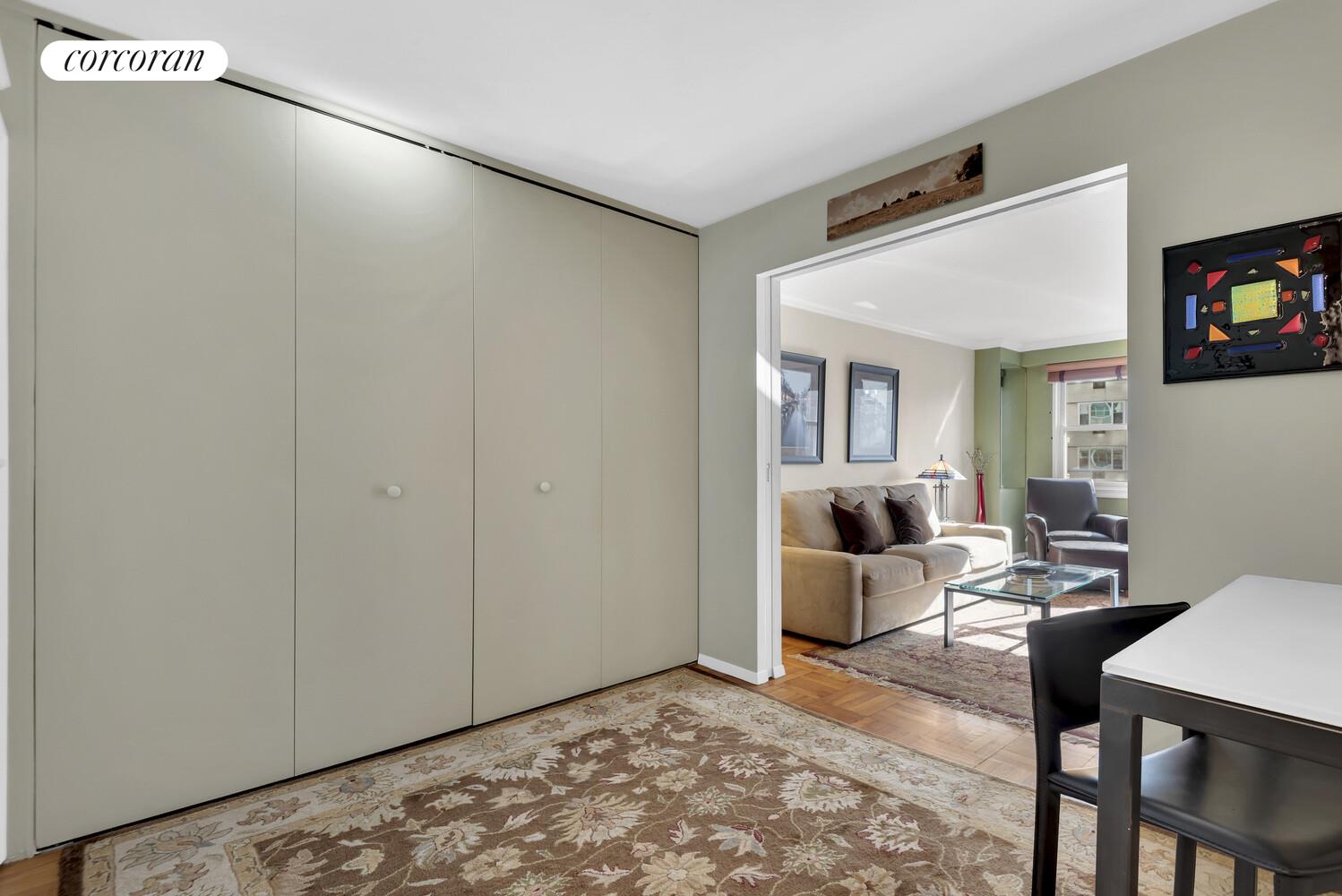 Bright, over-sized, and perfectly located! This stunning studio at The John Adams is in the heart of Greenwich Village offering the ideal Manhattan lifestyle for first-time buyers or those looking to down-size. Bathed in east-facing sunlight, this smartly designed home features an updated kitchen with dishwasher, a tremendous amount of customized closet space throughout, and modern upgrades that blend functionality with timeless Village charm. And perhaps the biggest highlight - a custom-built, king-sized Murphy bed that unfolds within its own closed off sleeping room, allowing for a seamless transition from day to night!