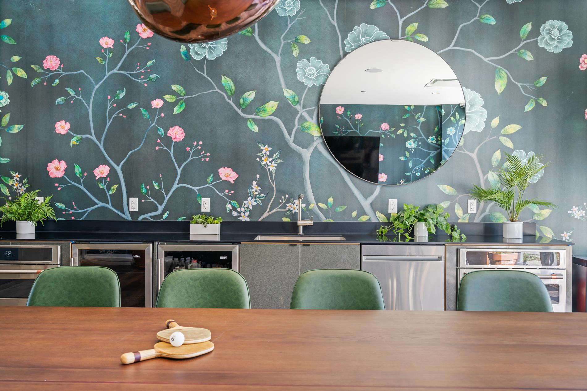 The building's amenities include a bright fitness center, game room, golf simulator, coworking lounge, conference rooms, rooftop sun deck, and a private outdoor pool located on the fifth floor. The building also offers bike storage, and private storage cages for rent– with a door person present seven days a week from 11AM to 7PM.