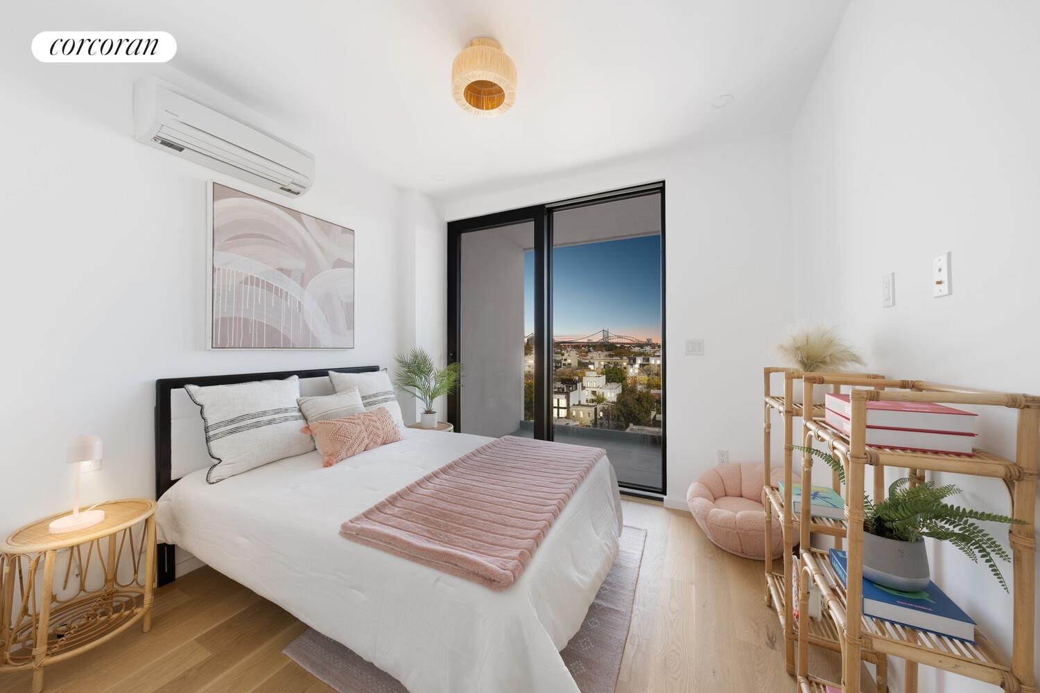 This spacious two-bedroom, two-bathroom, floor-through penthouse residence spans approximately 1,333 square feet and showcases floor-to-ceiling windows, recessed lighting, and central heating and cooling throughout. The expansive layout opens onto a private terrace with open-sky views, while a private roof deck-exclusive to this home-offers an exceptional setting for entertaining or relaxing under the skyline.