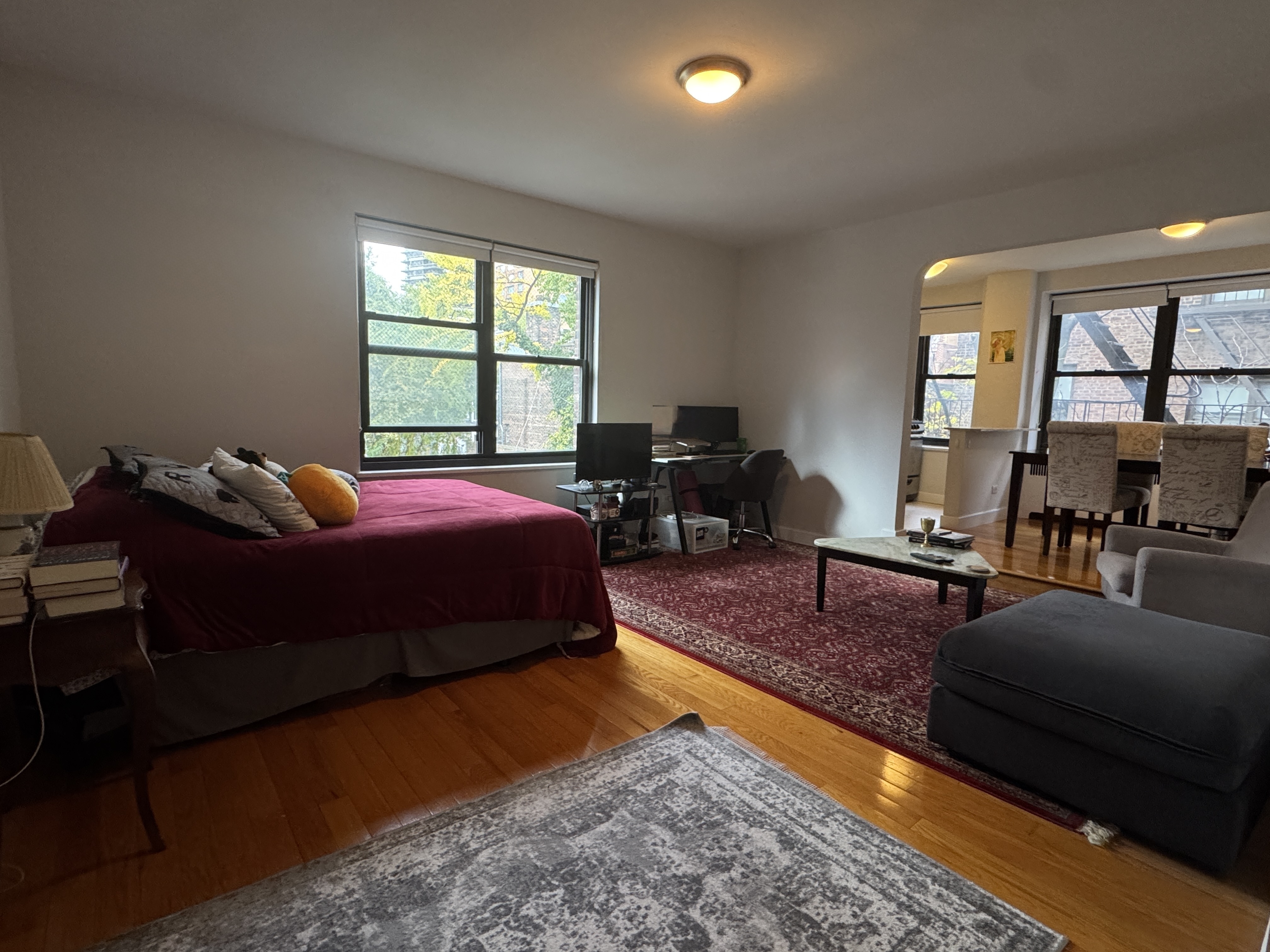 Serene Studio with Windowed Layout, Modern Finishes, and Tree-Top Views This beautifully designed studio offers the perfect blend of calm and convenience — a quiet retreat in the heart of the city. Facing the rear of the building, the apartment overlooks charming townhouses and lush trees, creating a peaceful, green view that feels worlds away from Midtown energy. Every area of this home is thoughtfully defined, with windows bringing in natural light throughout the day. - Windowed Kitchen is featuring stainless-steel appliances, a perfectly sized dishwasher, and ample cabinet storage. - Windowed Dining Area - Living & Sleeping Area is spacious enough for entertainment, relaxation, and rest, all with sunlight streaming through large windows. - Windowed Office/Study Area - Windowed Bathroom with natural light and ventilation - Laundry in Building - Part-Time Doorman is on duty from 3:30 PM – 11:30 PM for added service and security. - Exceptionally quiet thanks to its rear exposure and garden-facing position. - Centrally located near 59th Street–Lexington Avenue Station, you’ll have easy access to the N, R, W, 4, 5, and 6 trains, as well as the F and Q trains at 63rd Street station and plus express bus routes including the M15 and M57, making citywide travel effortless. Enjoy being just moments from Central Park, major shops, grocery stores, cafés, and restaurants. Experience a home that feels both tranquil and connected — bright, well-laid out, and perfectly located. This is offered as a lease assignment, with the incoming tenant having the option to extend the lease at the end of the current term. The apartment is available as early as November 24 and the current lease ends on July 31, 2026. Please note that there is a monthly $50 water and sewer assessment fee ( not included in the monthly rent )