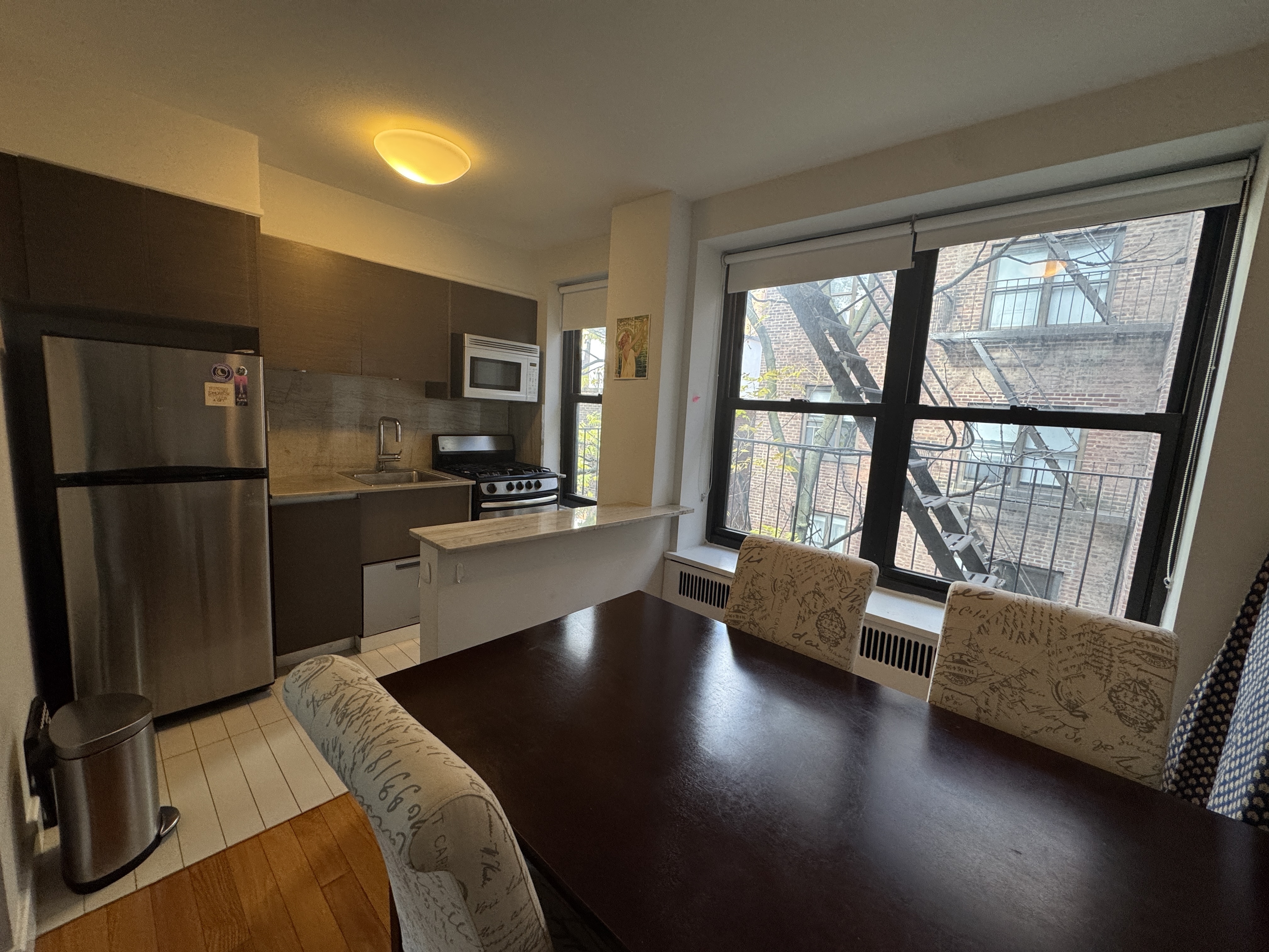 • Serene Studio with Windowed Layout, Modern Finishes, and Tree-Top Views This beautifully designed studio offers the perfect blend of calm and convenience — a quiet retreat in the heart of the city. Facing the rear of the building, the apartment overlooks charming townhouses and lush trees, creating a peaceful, green view that feels worlds away from Midtown energy. Every area of this home is thoughtfully defined, with windows bringing in natural light throughout the day. - Windowed Kitchen is featuring stainless-steel appliances, a perfectly sized dishwasher, and ample cabinet storage. - Windowed Dining Area - Living & Sleeping Area is spacious enough for entertainment, relaxation, and rest, all with sunlight streaming through large windows. - Windowed Office/Study Area - Windowed Bathroom with natural light and ventilation - Laundry in Building - Part-Time Doorman is on duty from 3:30 PM – 11:30 PM for added service and security. - Exceptionally quiet thanks to its rear exposure and garden-facing position. - Centrally located near 59th Street–Lexington Avenue Station, you’ll have easy access to the N, R, W, 4, 5, and 6 trains, as well as the F and Q trains at 63rd Street station and plus express bus routes including the M15 and M57, making citywide travel effortless. Enjoy being just moments from Central Park, major shops, grocery stores, cafés, and restaurants. Experience a home that feels both tranquil and connected — bright, well-laid out, and perfectly located. This is offered as a lease assignment, with the incoming tenant having the option to extend the lease at the end of the current term. The apartment is available as early as November 24 and the current lease ends on July 31, 2026. Please note that there is a monthly $50 water and sewer assessment fee ( not included in the monthly rent )