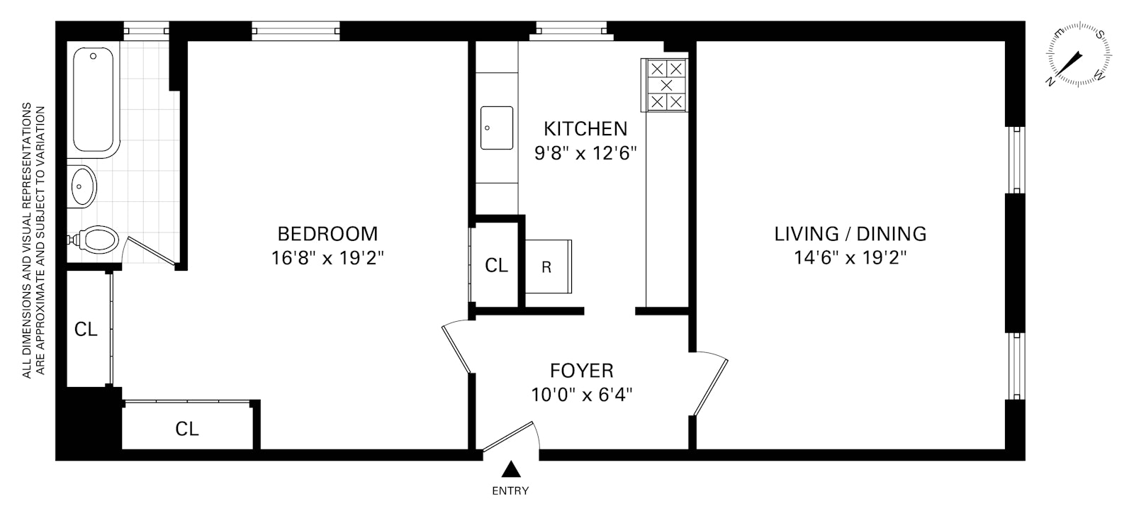 large, one-bedroom apartment at a full-service, pre-war coop one block from