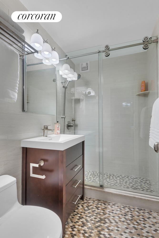 The spacious and bright, fully equipped kitchen boasts a generous amount of Silestone counters and custom solid wood cabinetry complemented by mosaic tile backsplash, as well as top-line stainless appliances including a Wolf gas range oven, KitchenAid dishwasher, Fisher & Paykal refrigerator and GE Profile built-in convection oven/microwave. Both bedrooms are bright and spacious and feature walk-in closets and en-suite baths; primary bedroom with full River view and 2nd bedroom with oblique River view. The primary bath features walk-in shower, marble floors and Grohe fixtures.