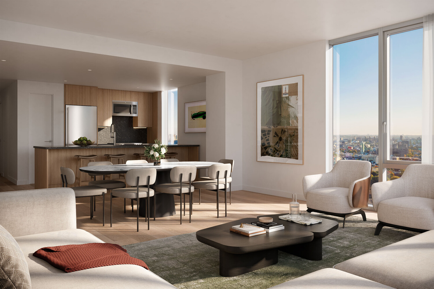 The residences at Eighty Nine DeKalb look out at sweeping panoramas of the Manhattan Skyline, Fort Greene Park, and Brooklyn landscape beyond. These considered spaces maximize light and views, with oversized windows that immerse residents in the city's special magic even as they remain cozy in their personal havens.